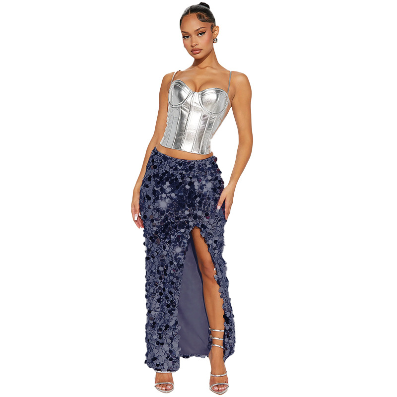 Sexy Women Wear Dress Sequin Dress Women Dress Slit Half Length Sequin Maxi Dress