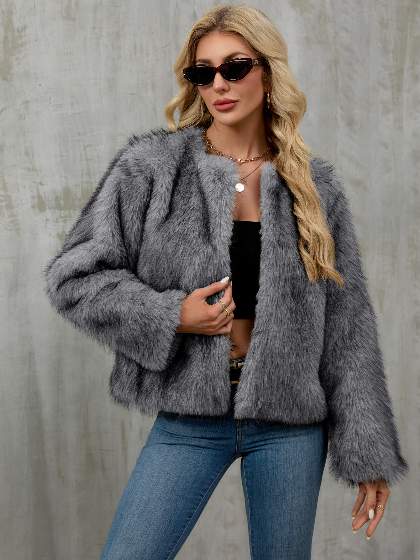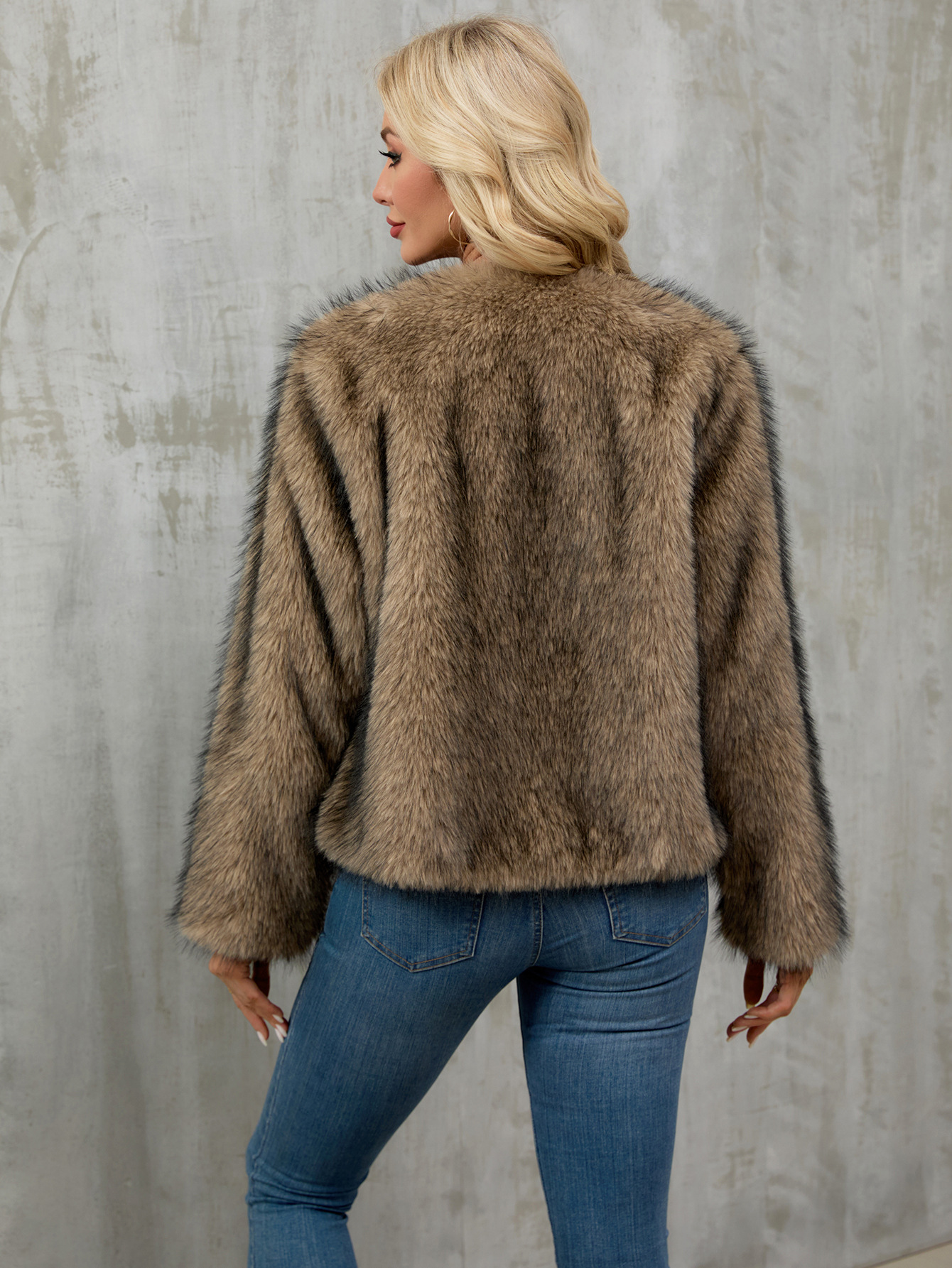 Short Faux Fur Coat Cardigan Autumn Winter Women Plush Coat Overcoat