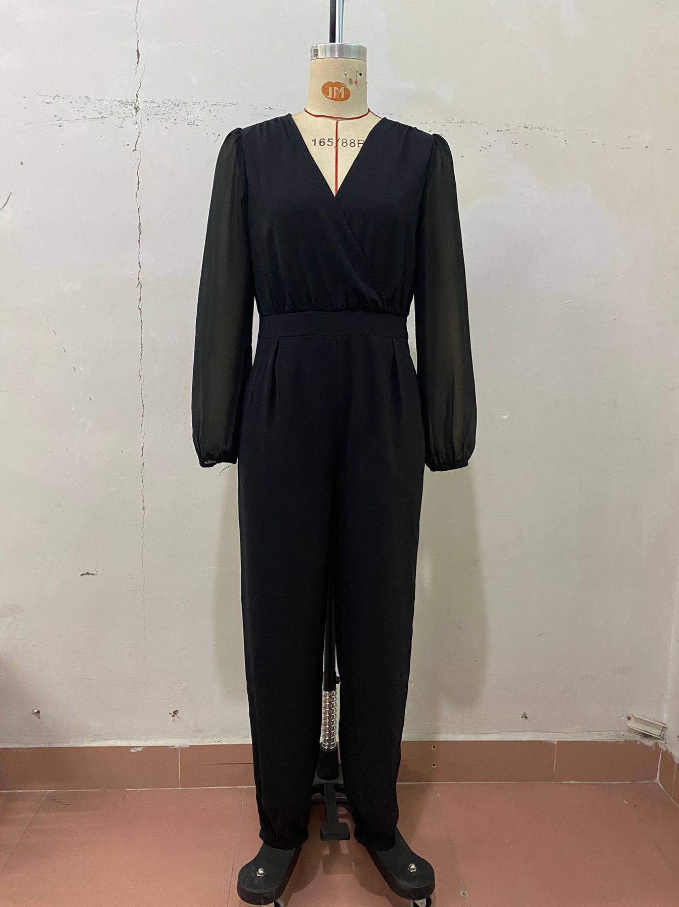 Simple Jumpsuit See through Lace Long Sleeve Black Jumpsuit