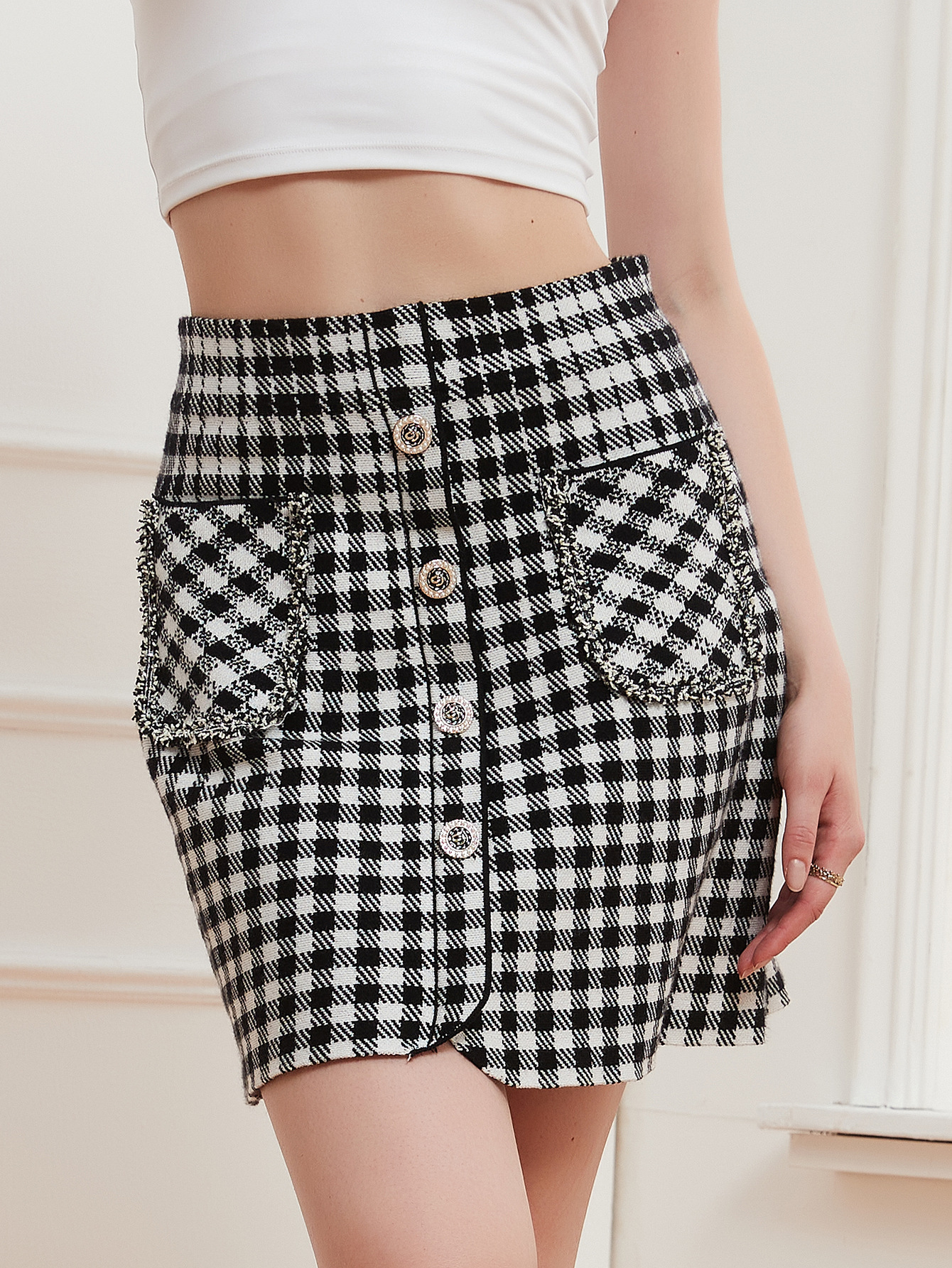 Socialite Chanel Plaid Autumn Winter Western Advanced Plaid Knitted A line Skirt