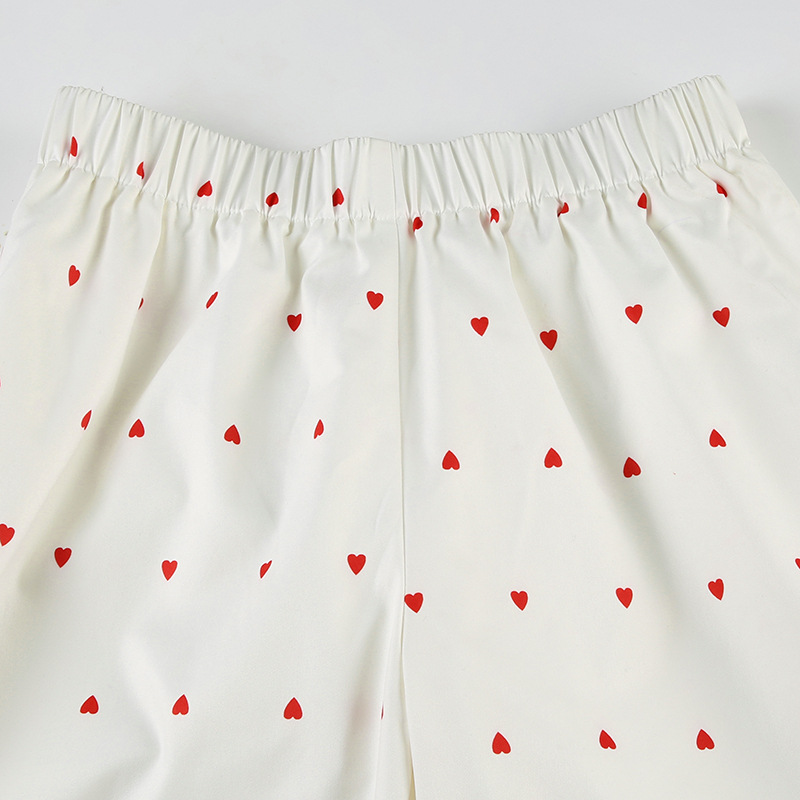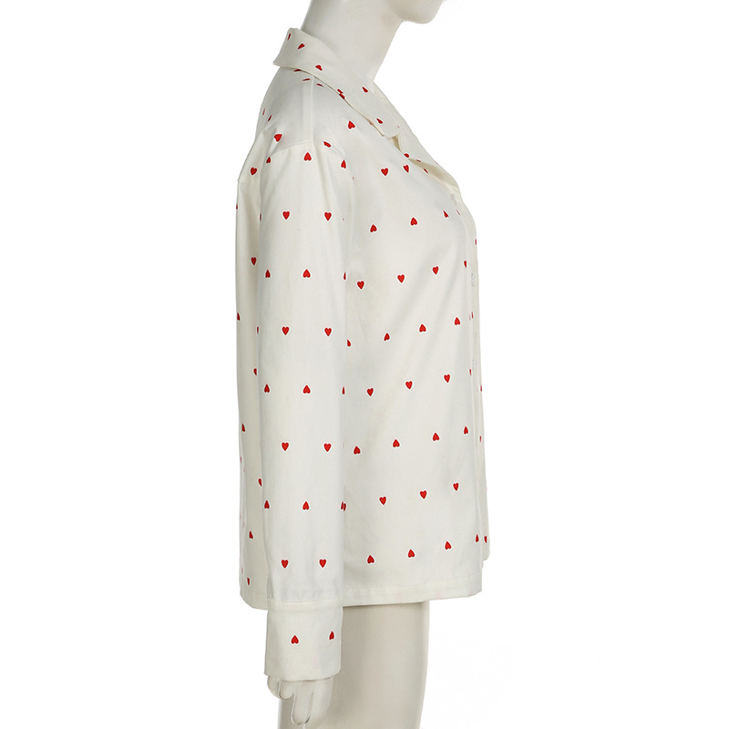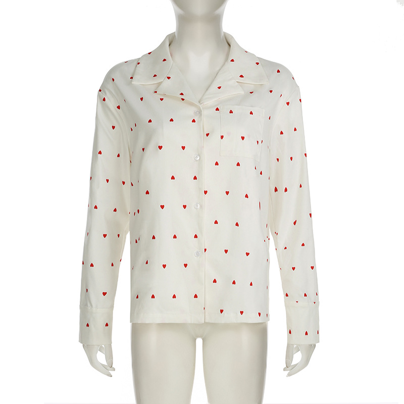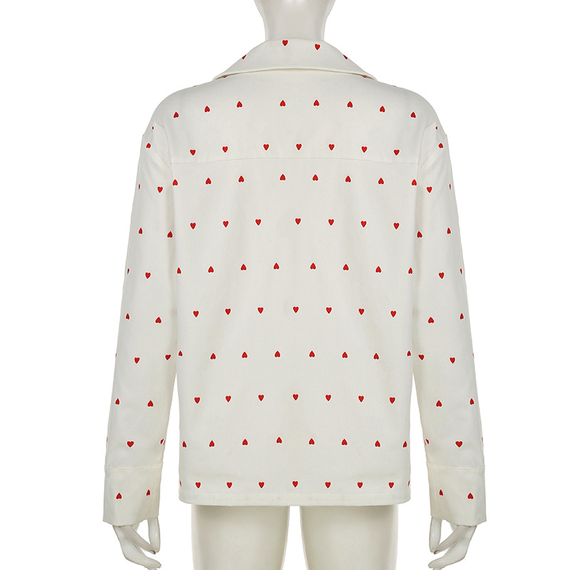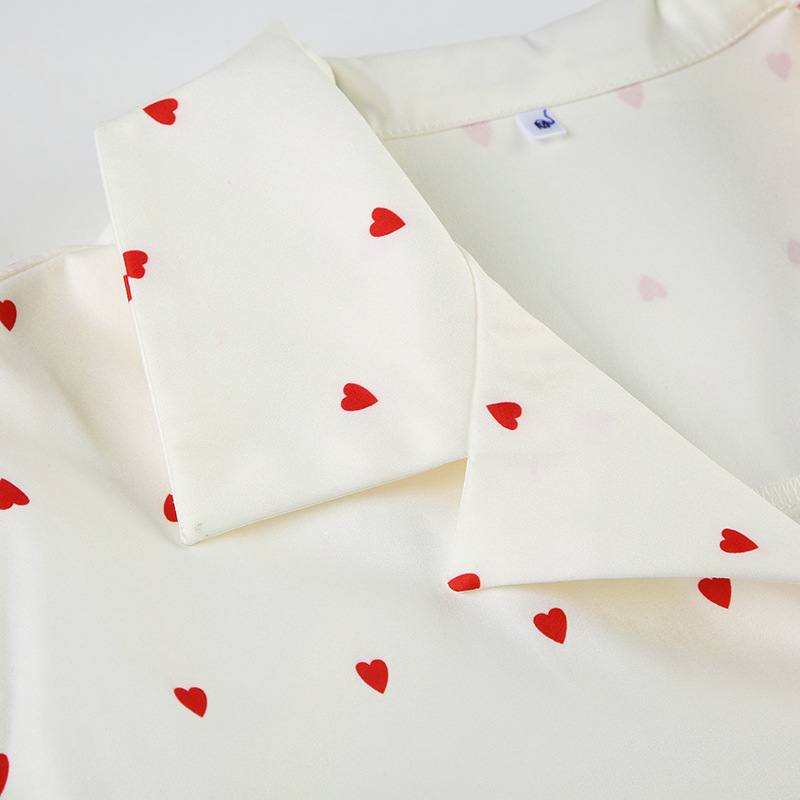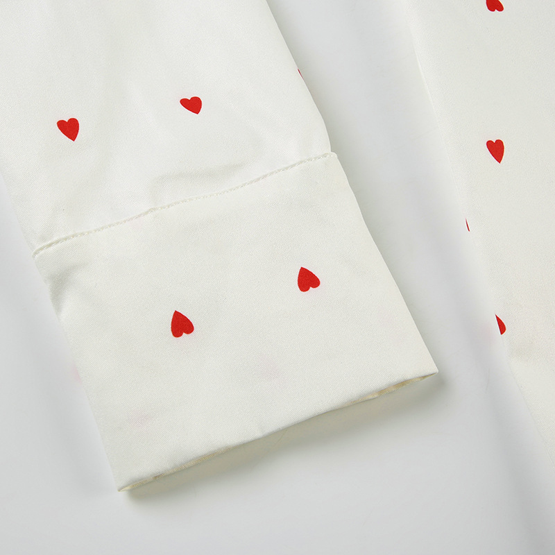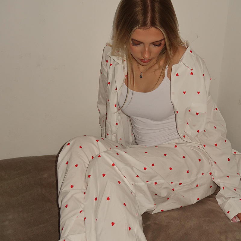 Spring Autumn Two Piece Sets Heart Printing Long Sleeved Shirt Trousers Pajamas Women Loose Comfortable Homewear Women