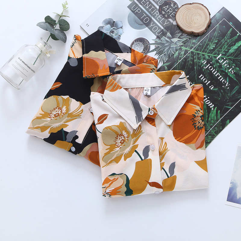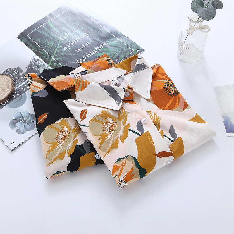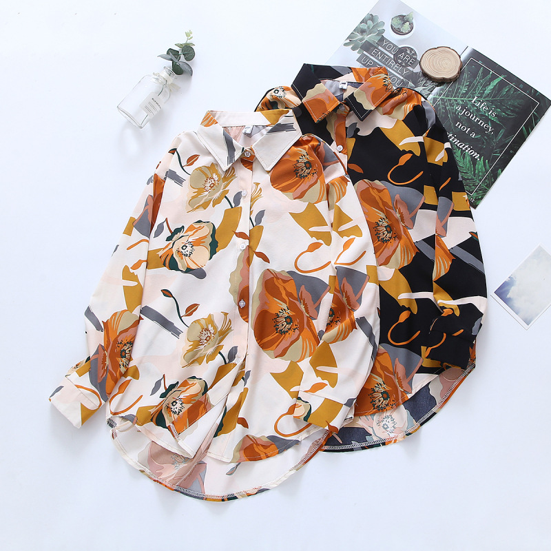 Spring Dignified Sense Of Design Niche Shirt Top Chiffon Shirt Printed Long Sleeve Shirt Women