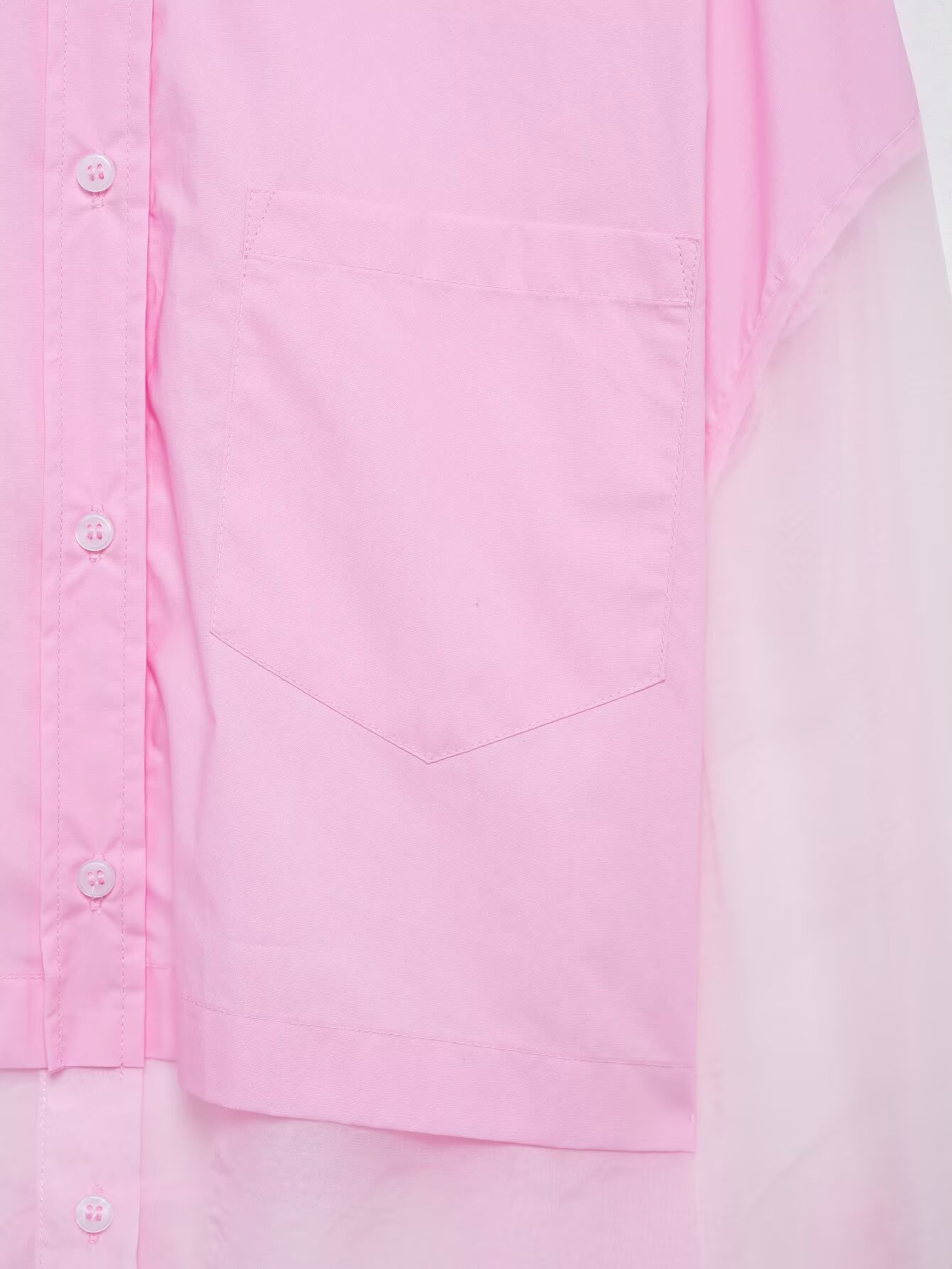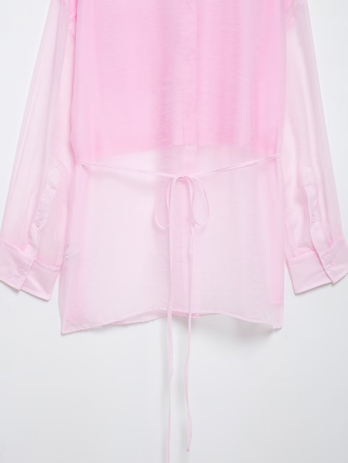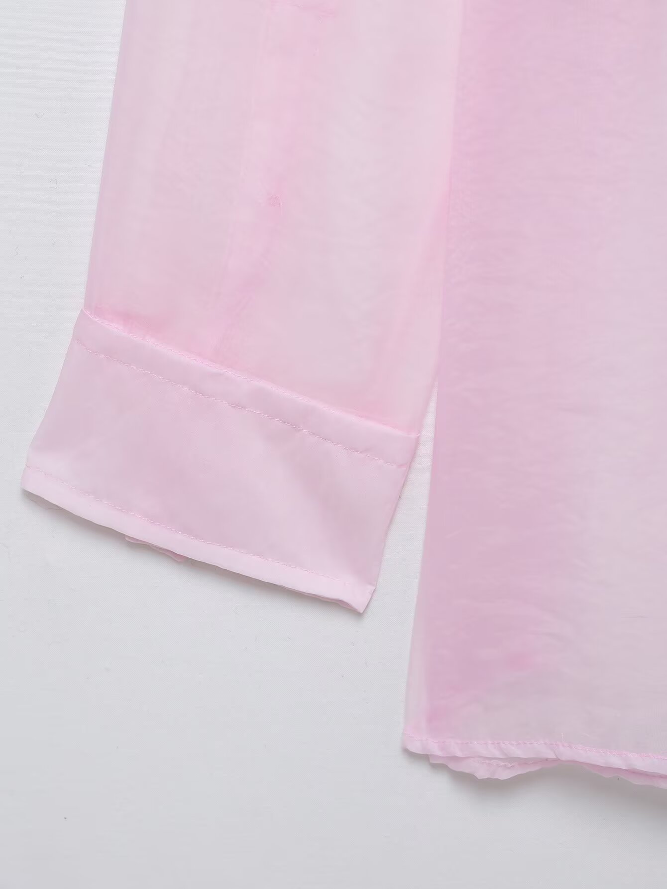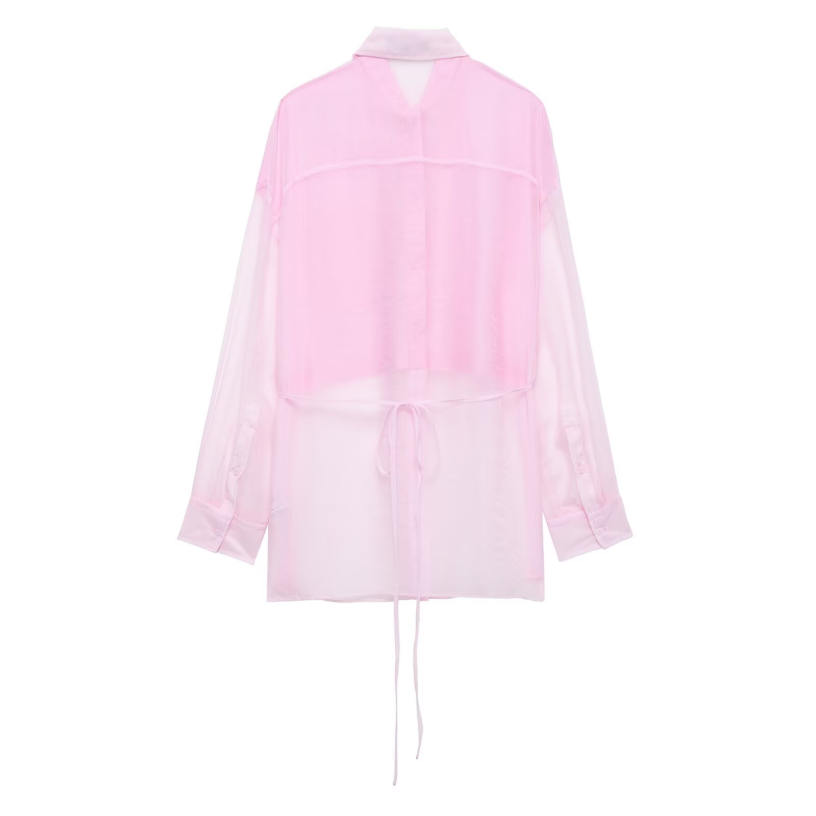 Spring Summer Women Clothing Commuting Transparent Organza Stitching Loose Long Sleeve Shirt
