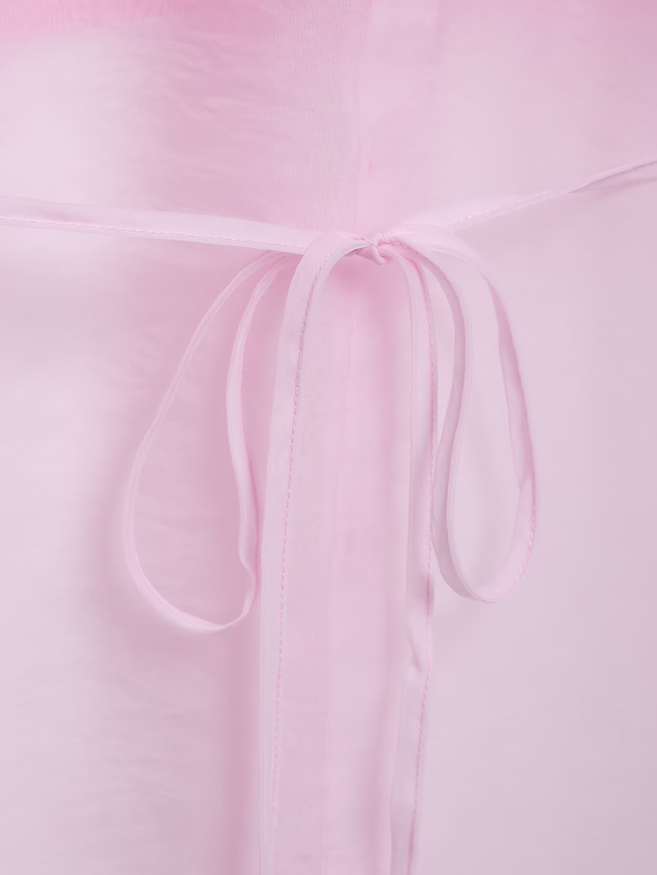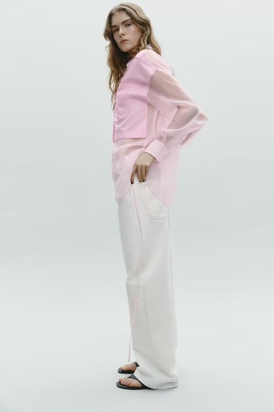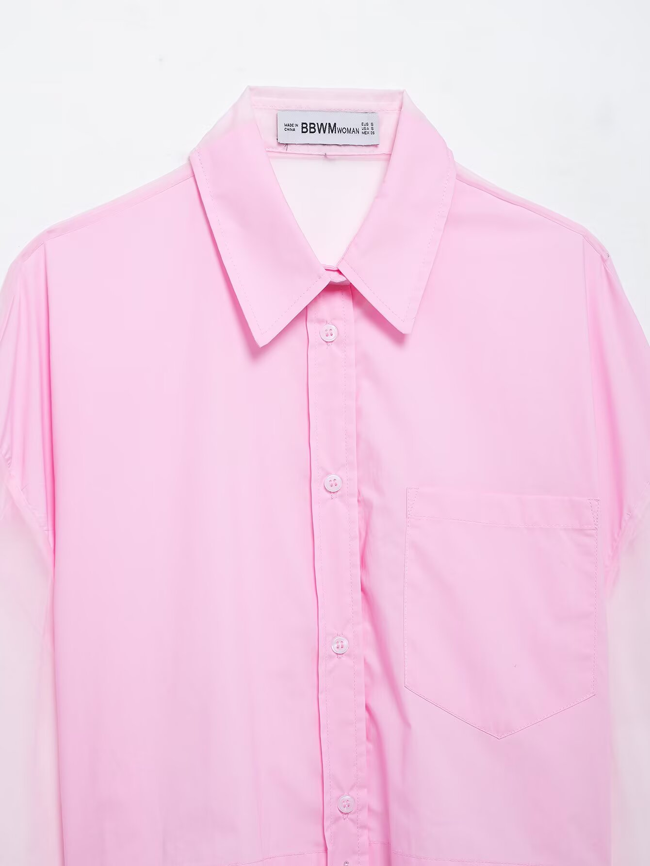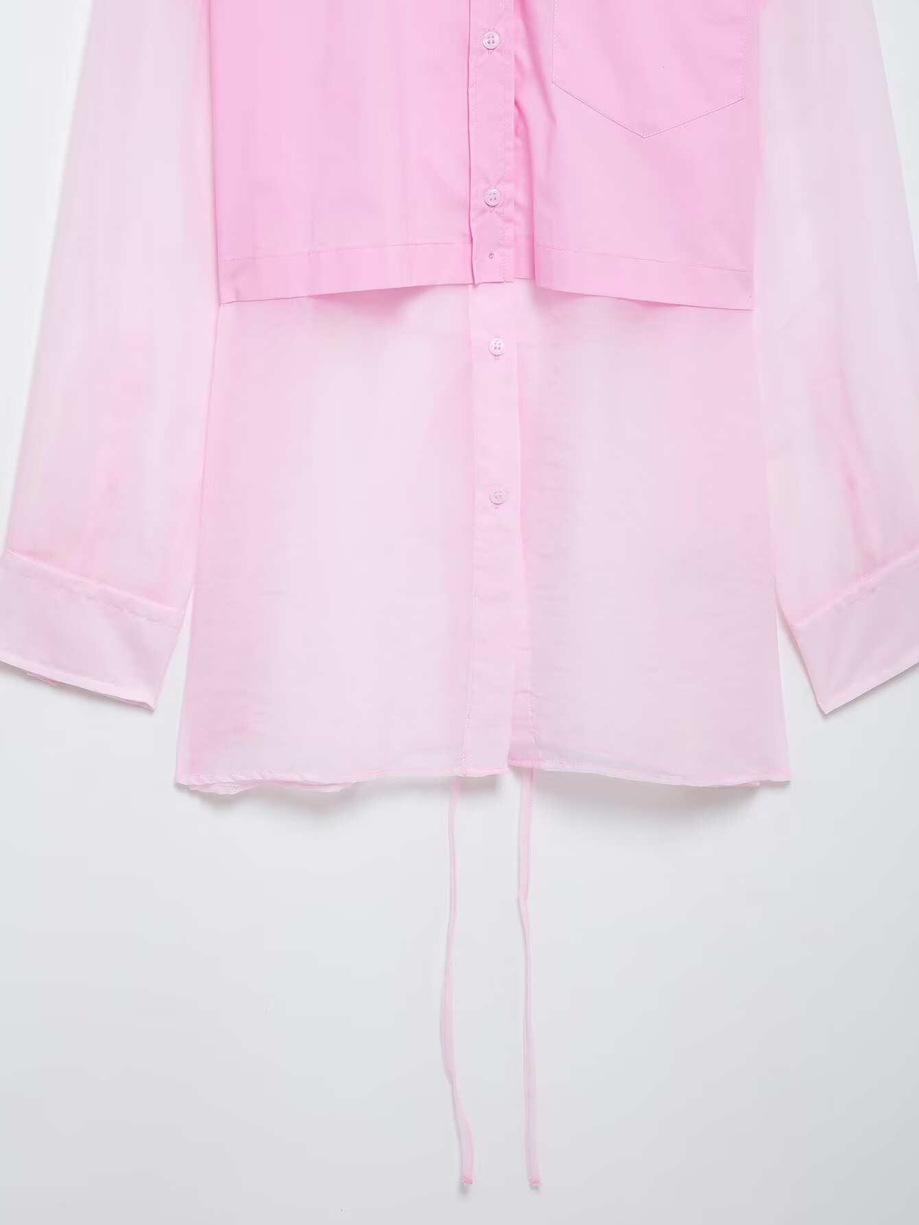 Spring Summer Women Clothing Commuting Transparent Organza Stitching Loose Long Sleeve Shirt
