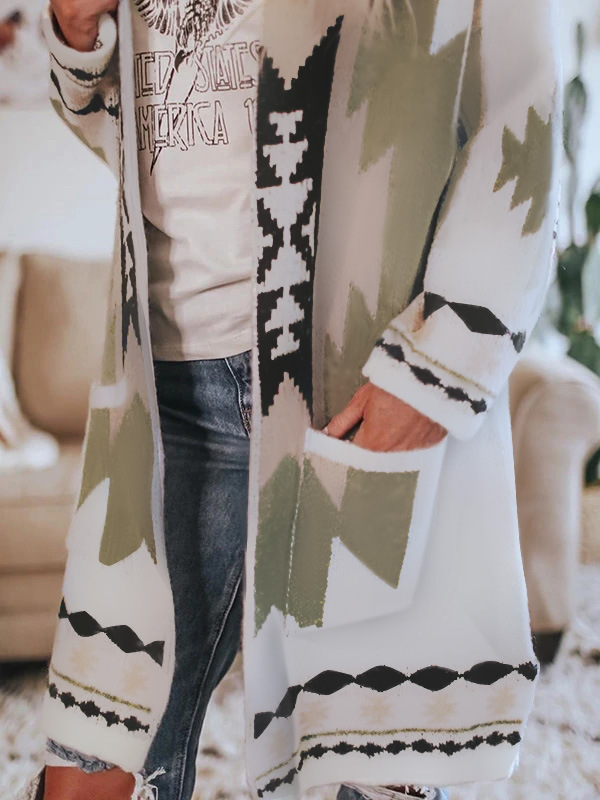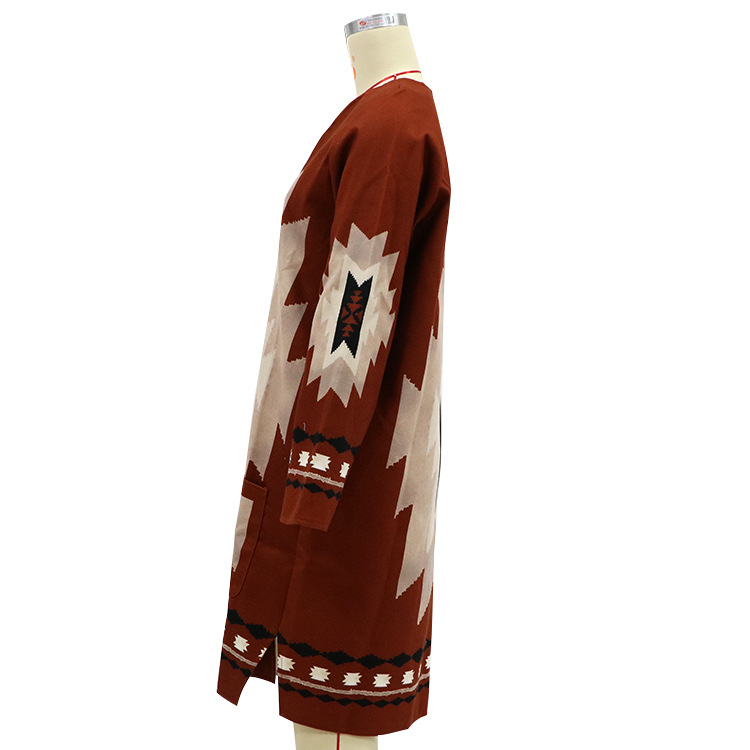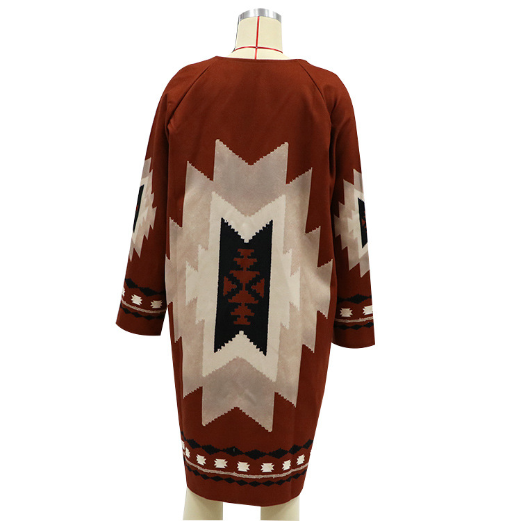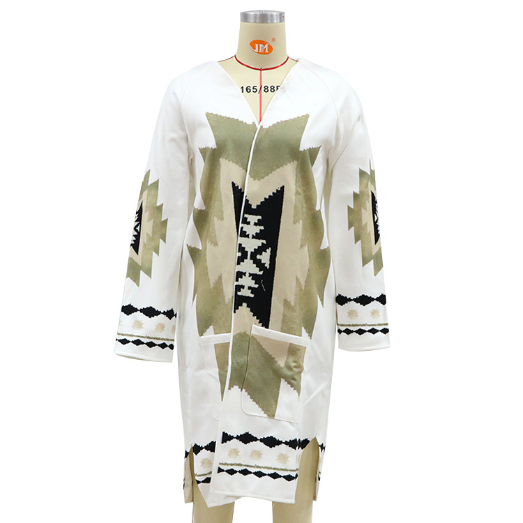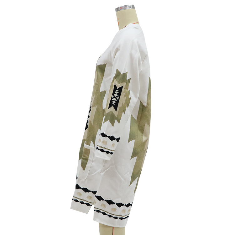 Spring Summer Women Clothing Long-Sleeved Printed Cardigan Coat Woolen Coat