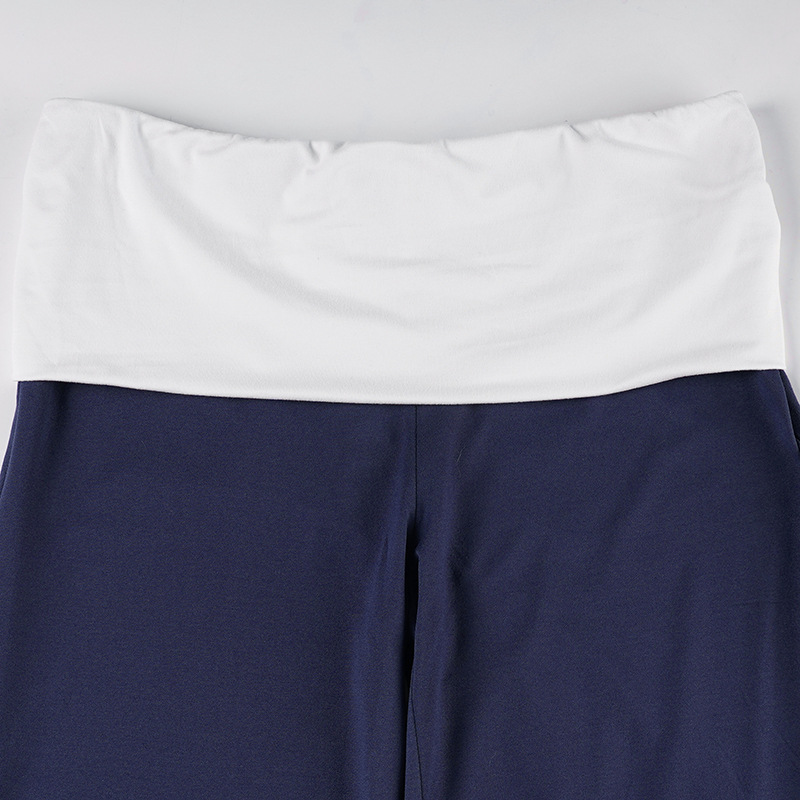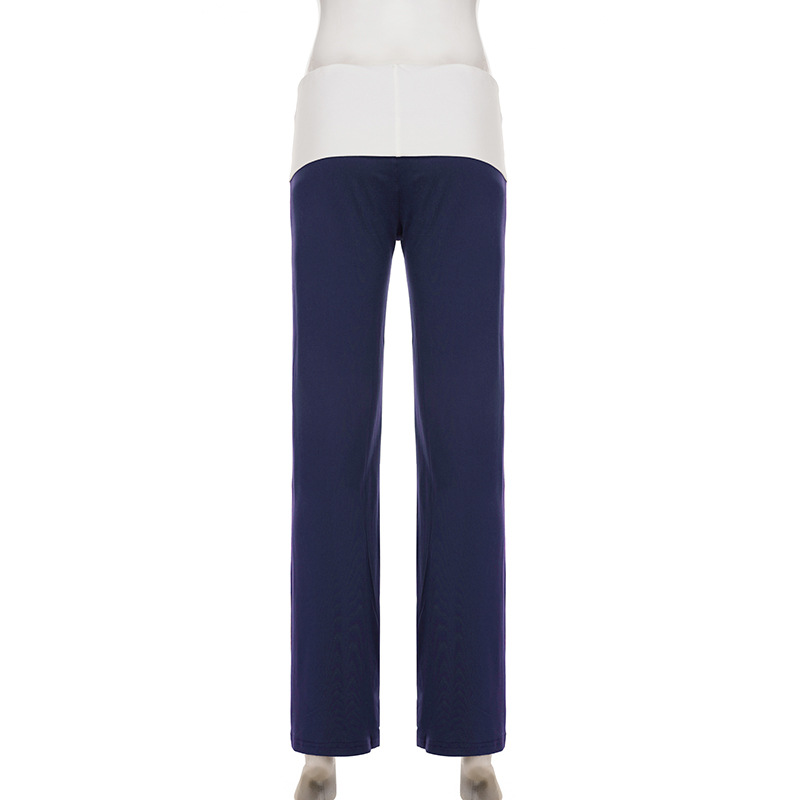 Street Casual Women Clothing Contrast Color Stitching Waist Head Simple Trousers Loose Drooping Wide Leg Pants Autumn