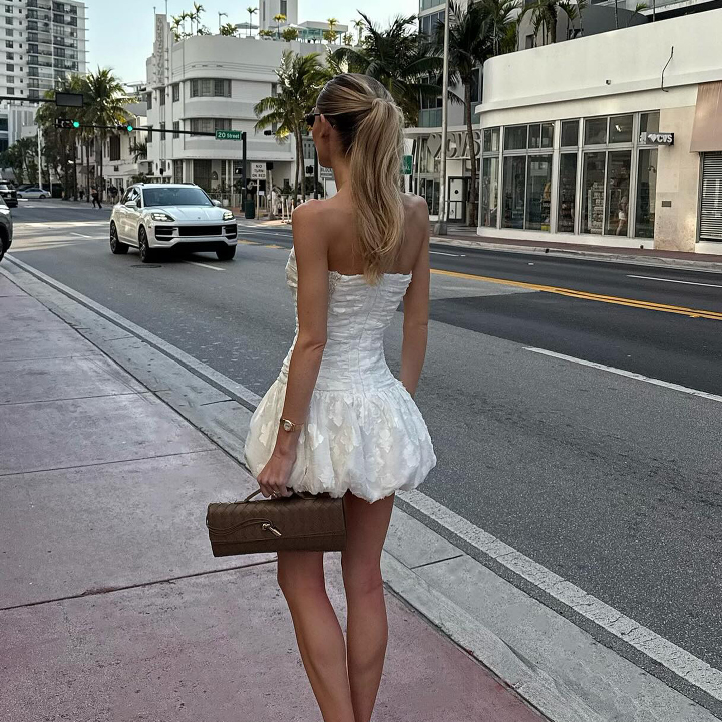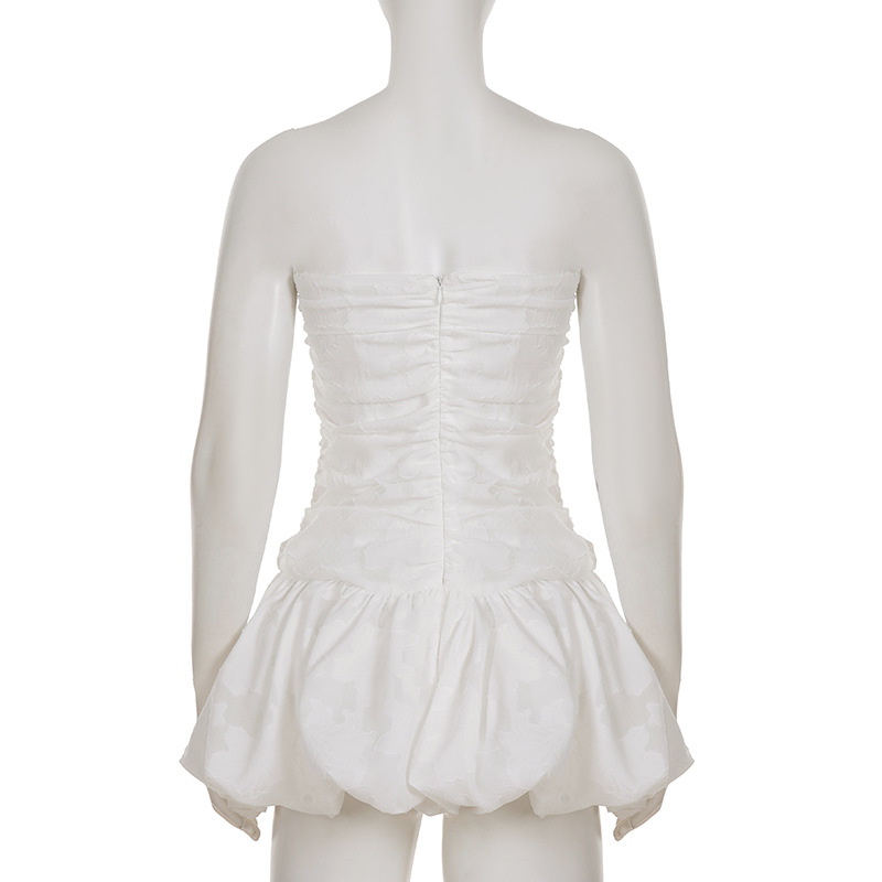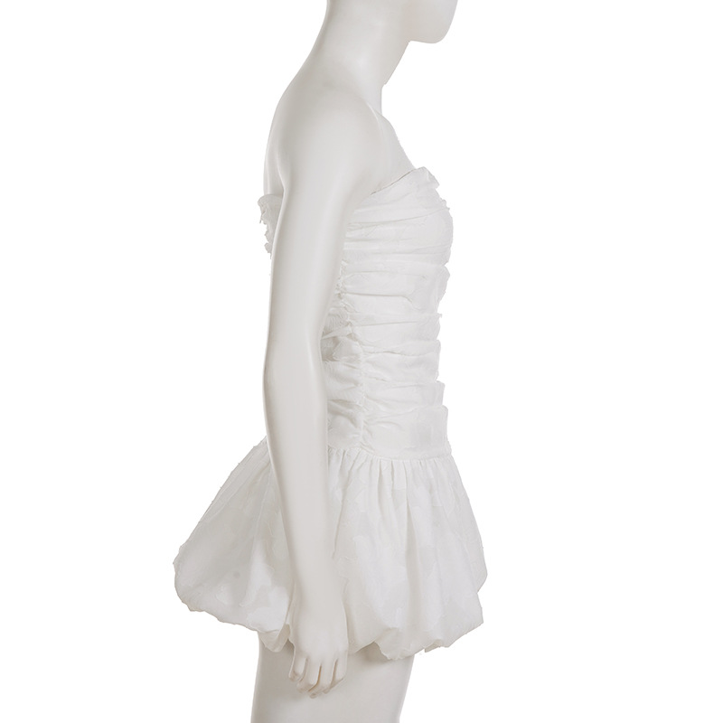 Street Sexy Women Clothing Texture Characteristic Tube Top Dress Sleeveless Slim Fit Waist A line Bud Dress