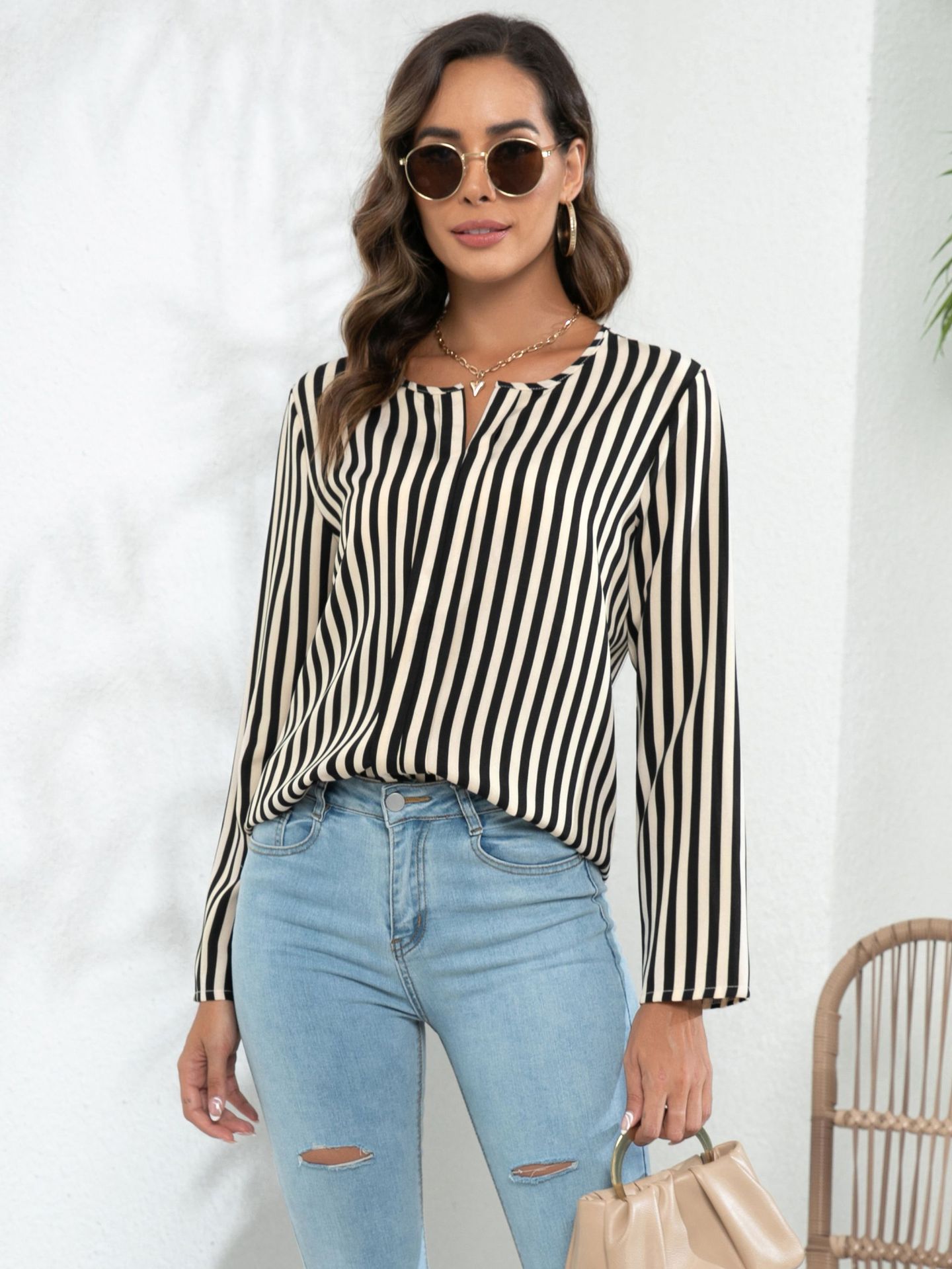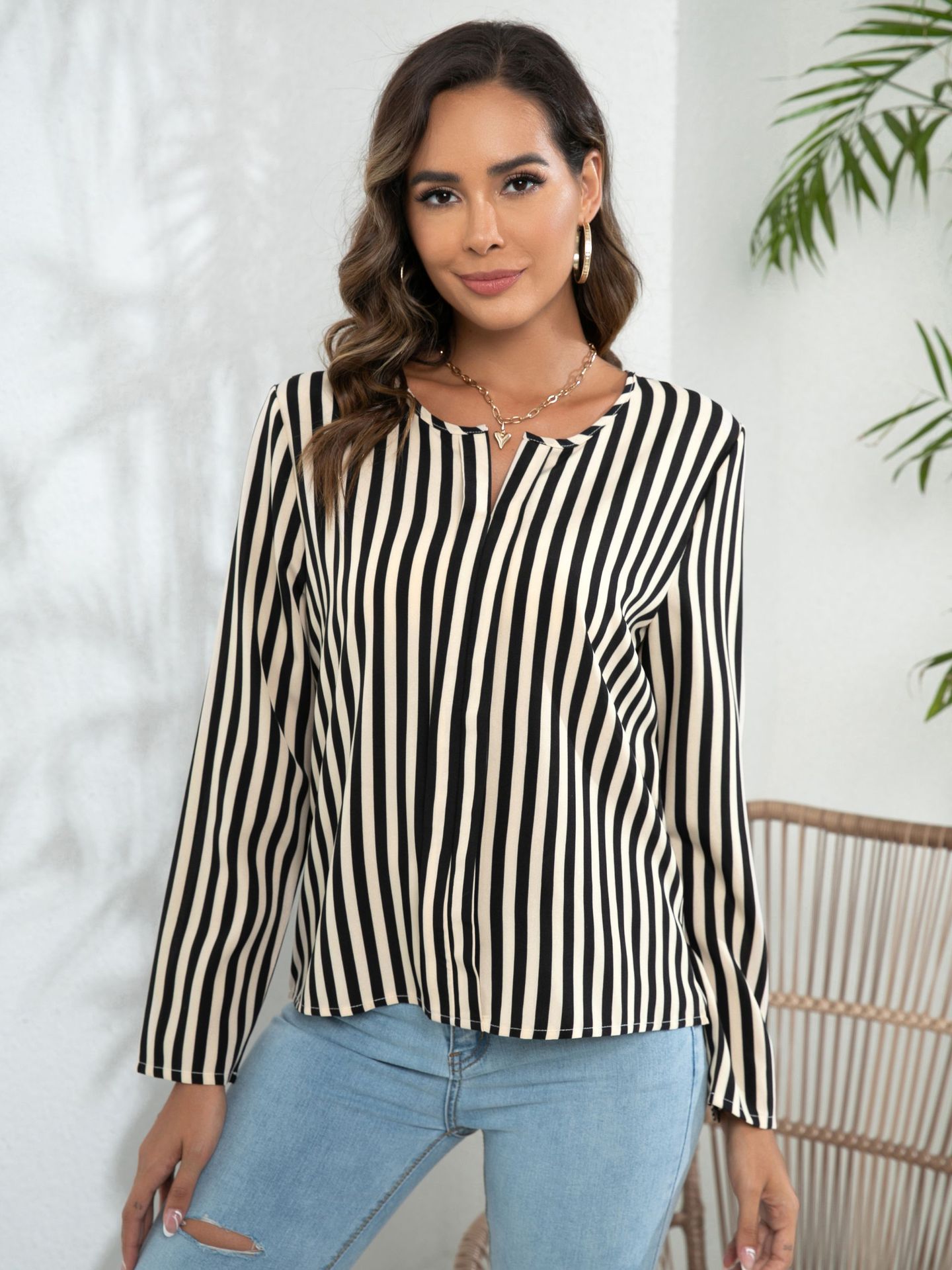 Striped Printed Women Top Loose Casual Long Sleeves Small Shirt Women Clothing