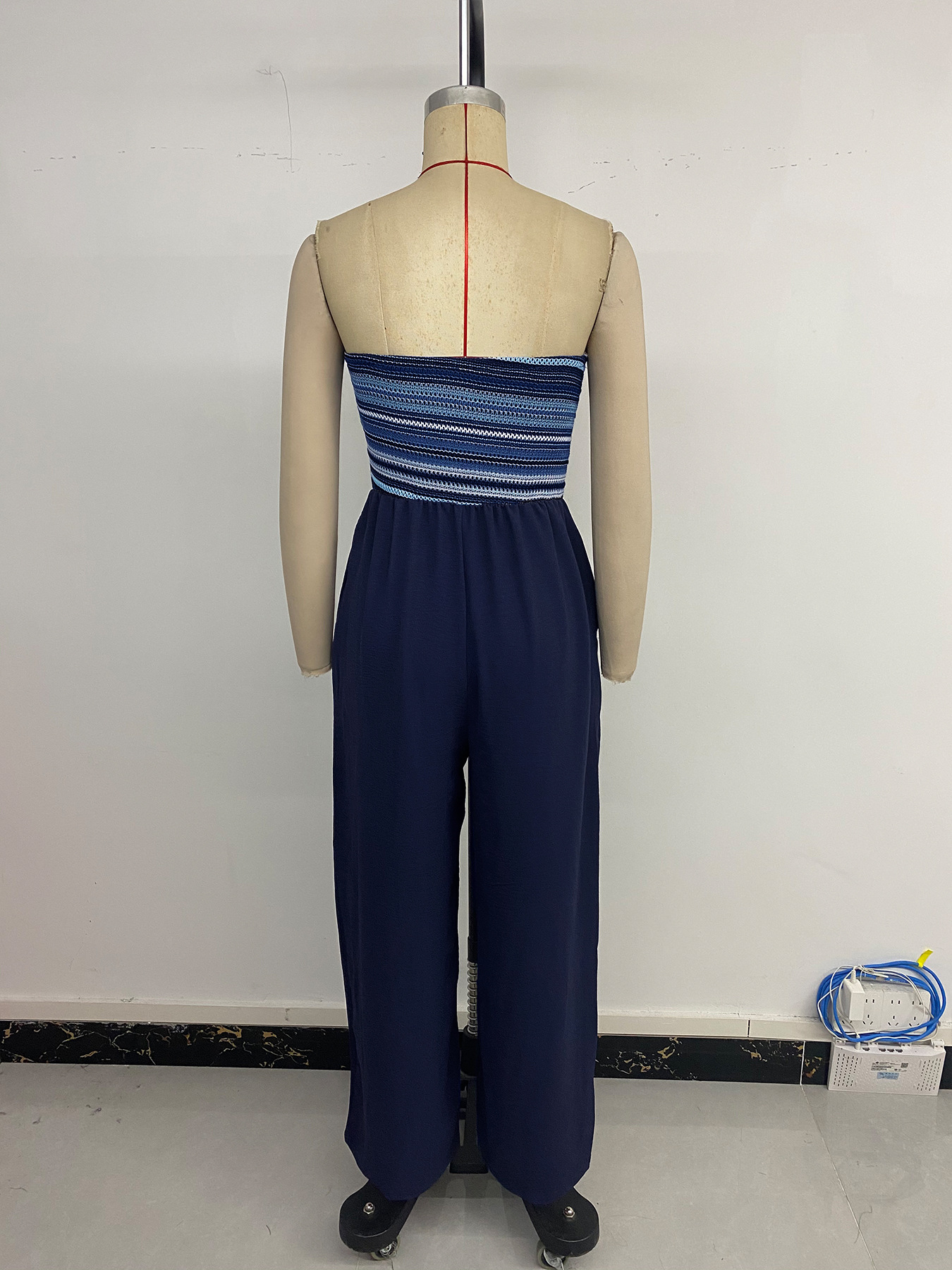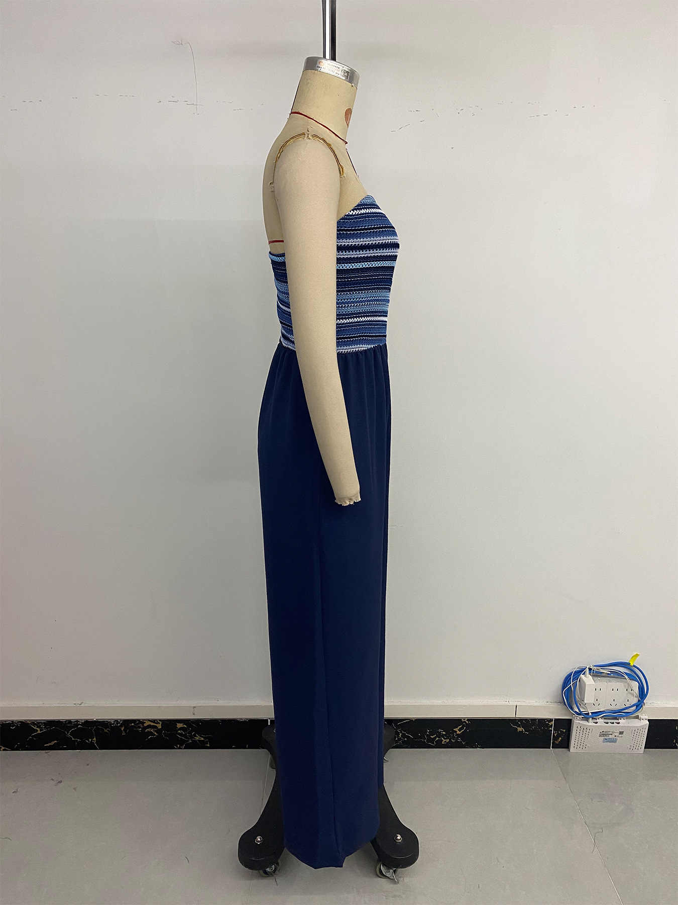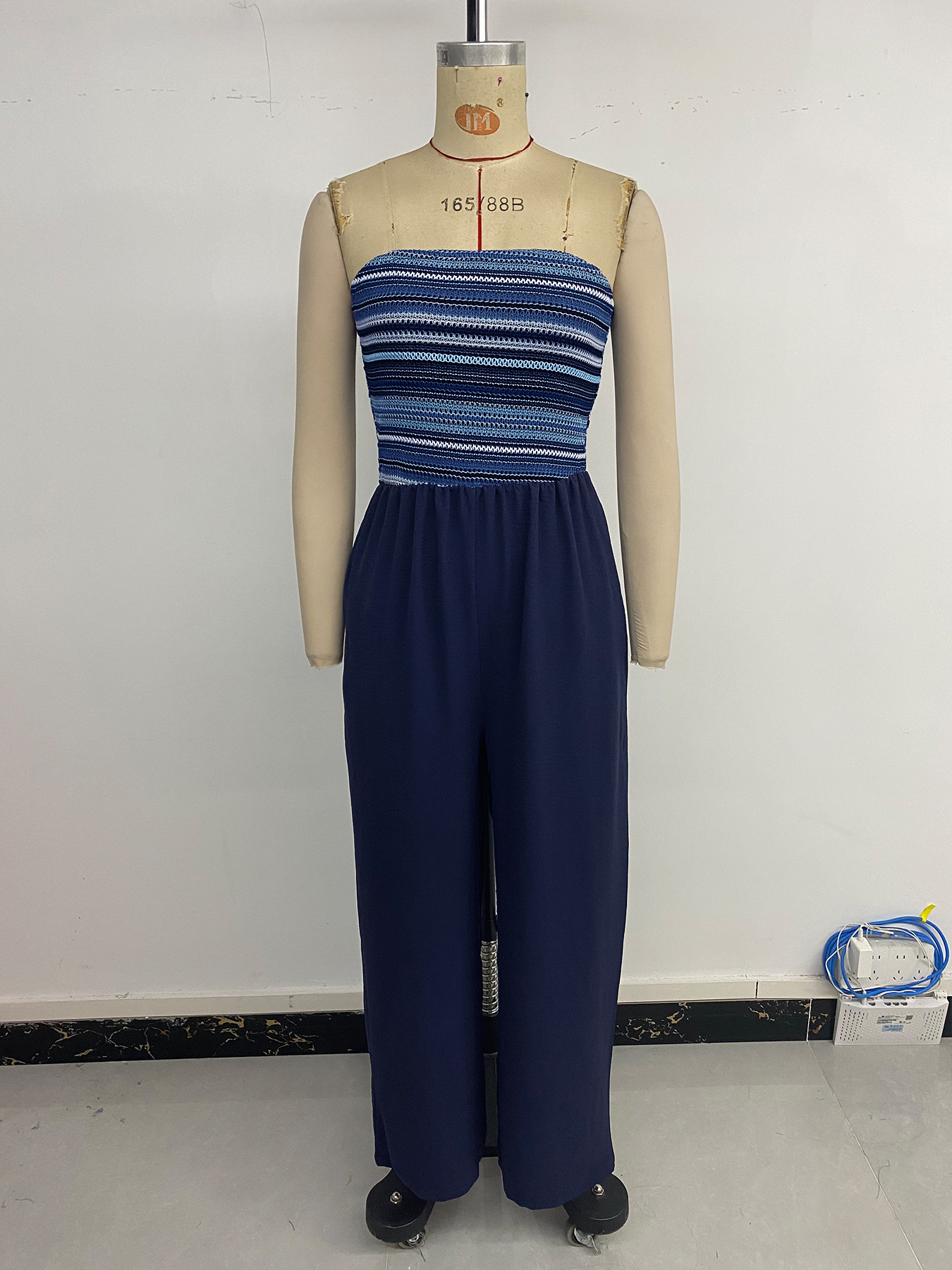 Summer Casual Simple Jumpsuit Elastic Patchwork Stripes Jumpsuit