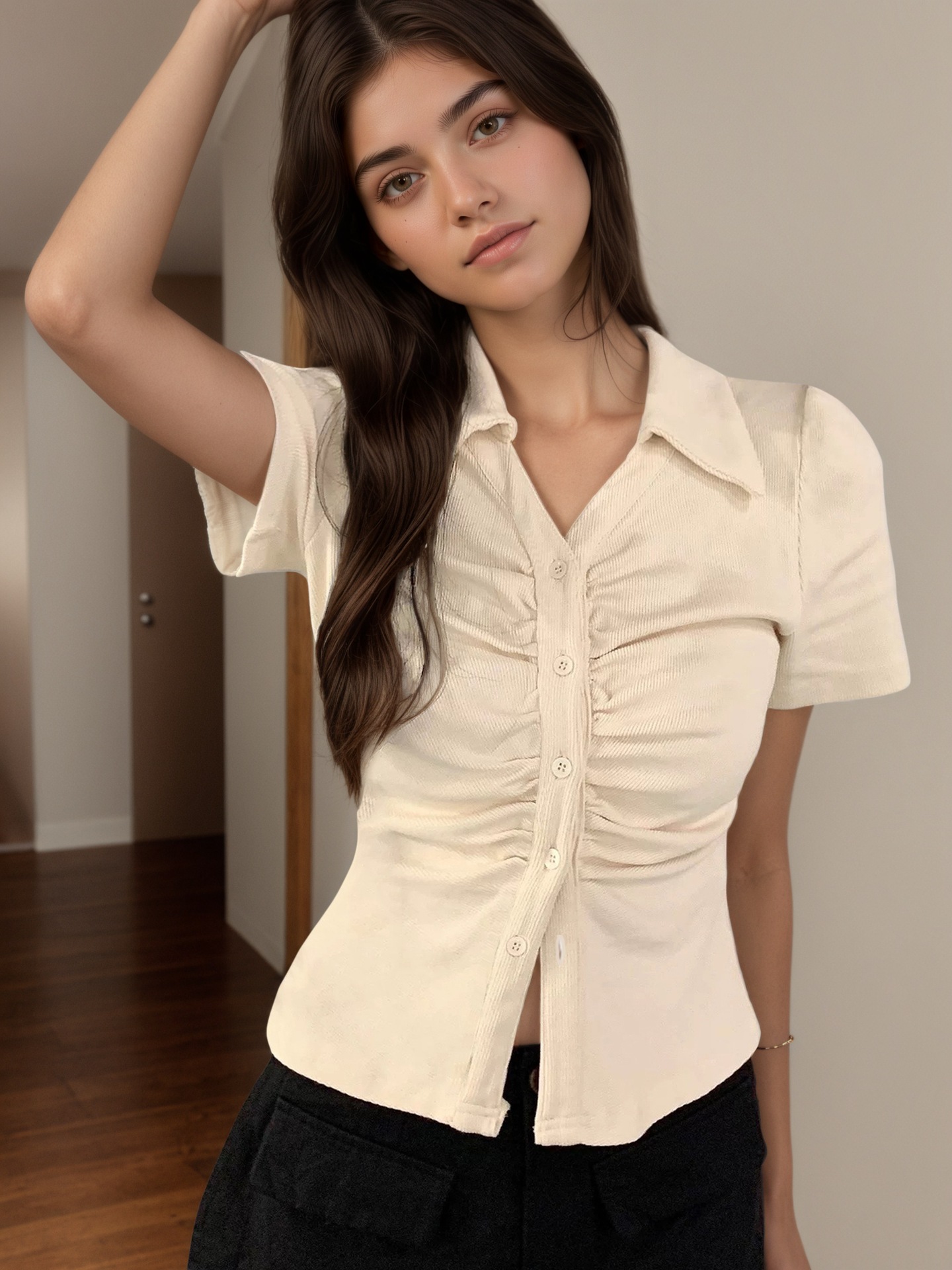 Summer Cinched Slimming Pullover Women Sexy Short All Match T shirt