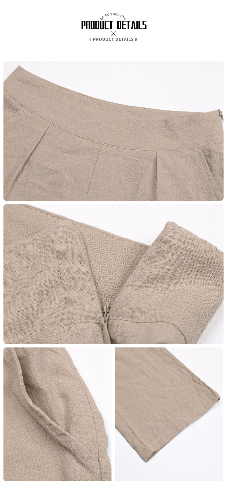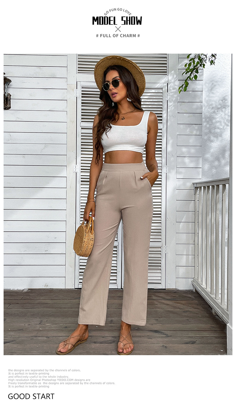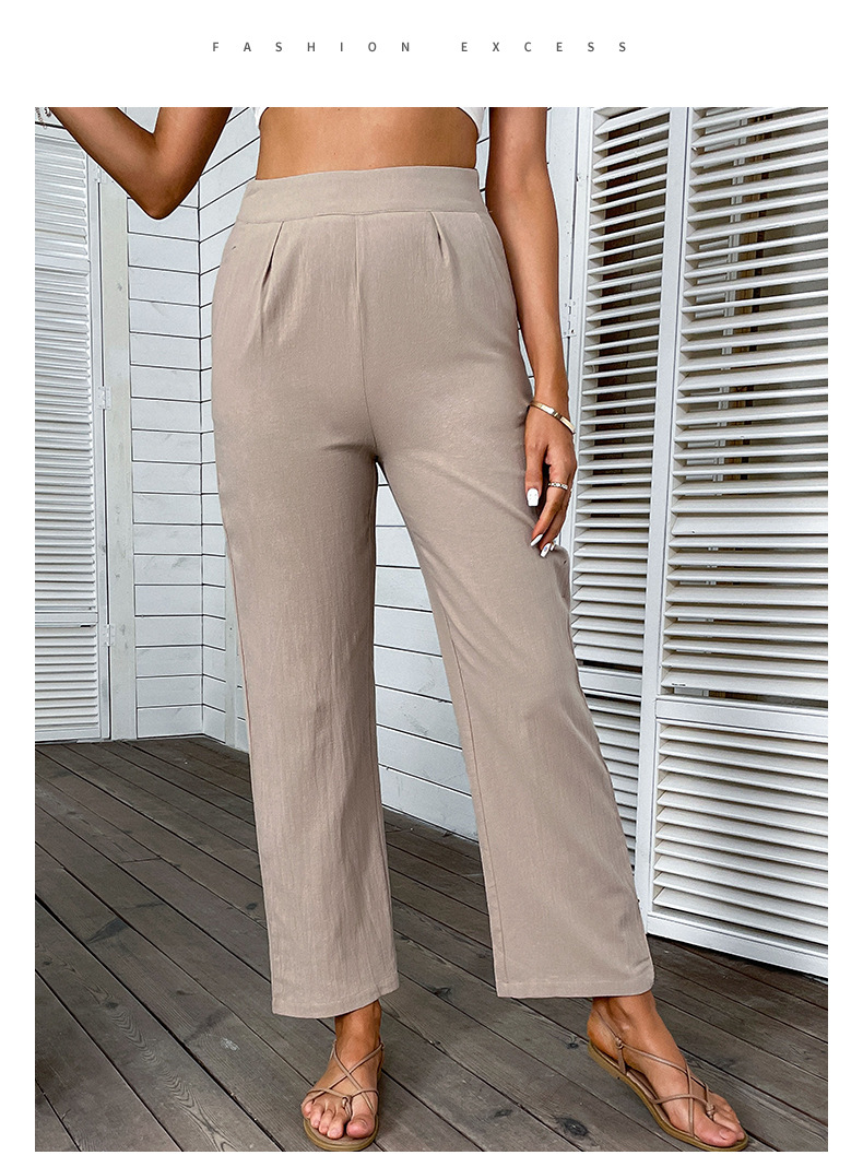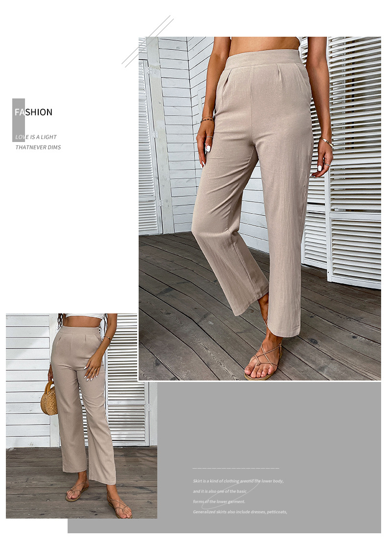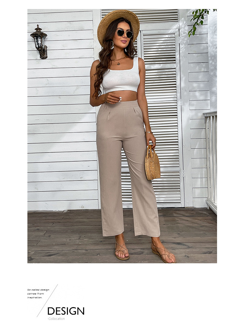 Summer Cotton Linen Trousers High Waist Solid Color Cropped Straight Pants Women