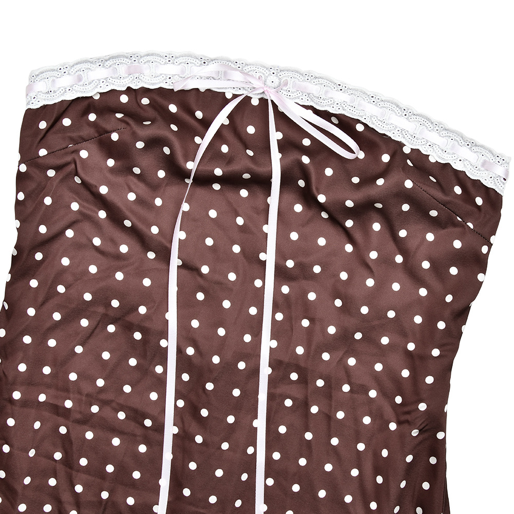 Summer French Polka Dot Tube Top Dress Sexy Backless Satin Dress