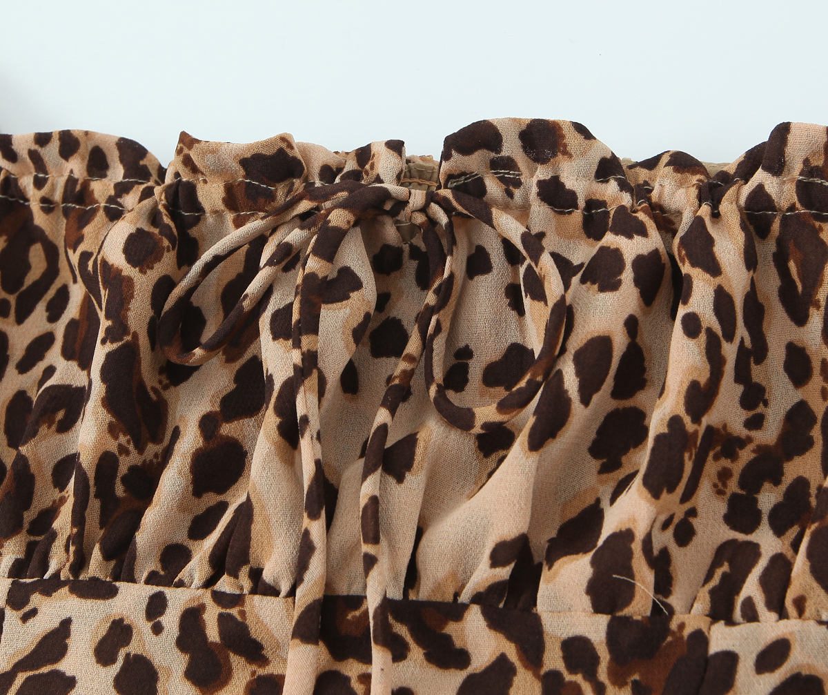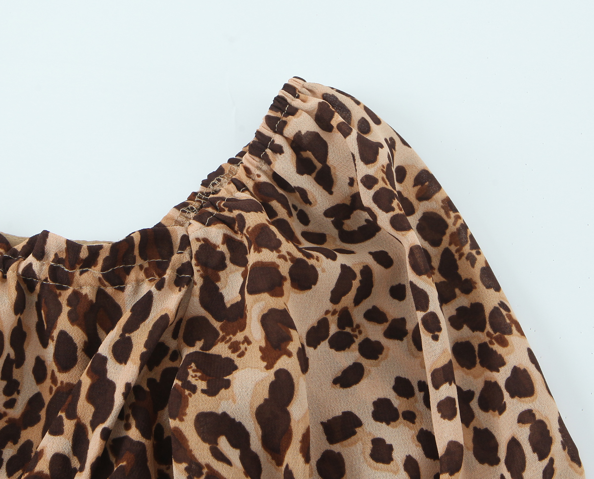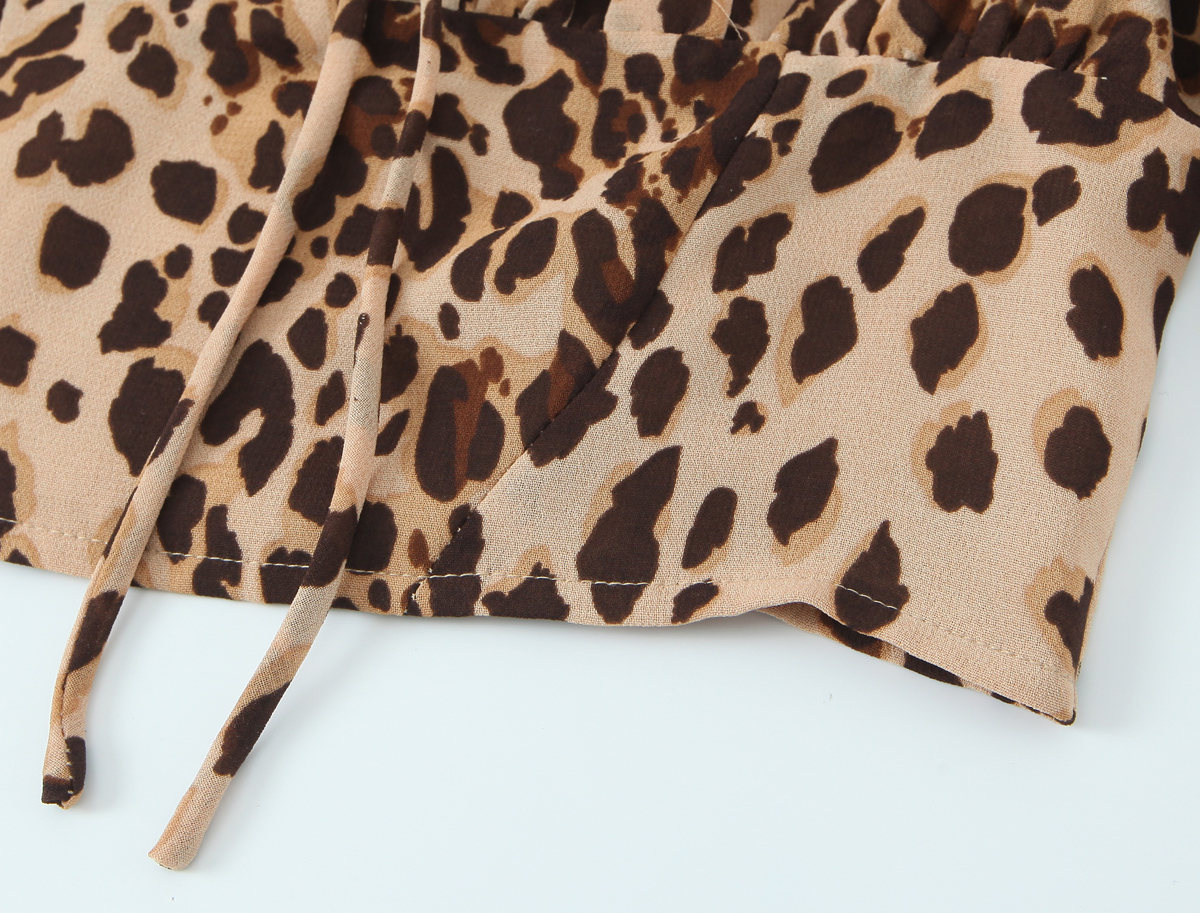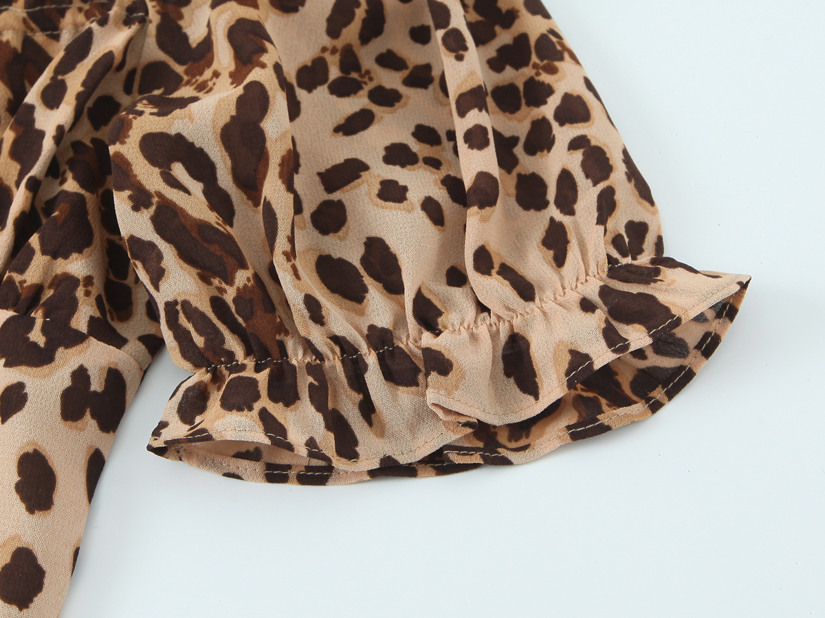 Summer French Sexy Leopard Print Lace up Bow Sexy Two Way Wear Puff Sleeve Shirt