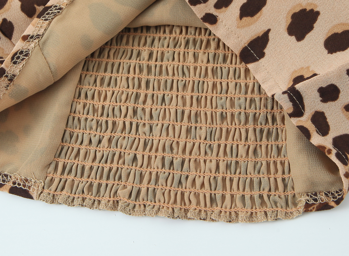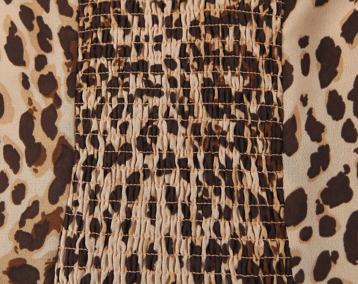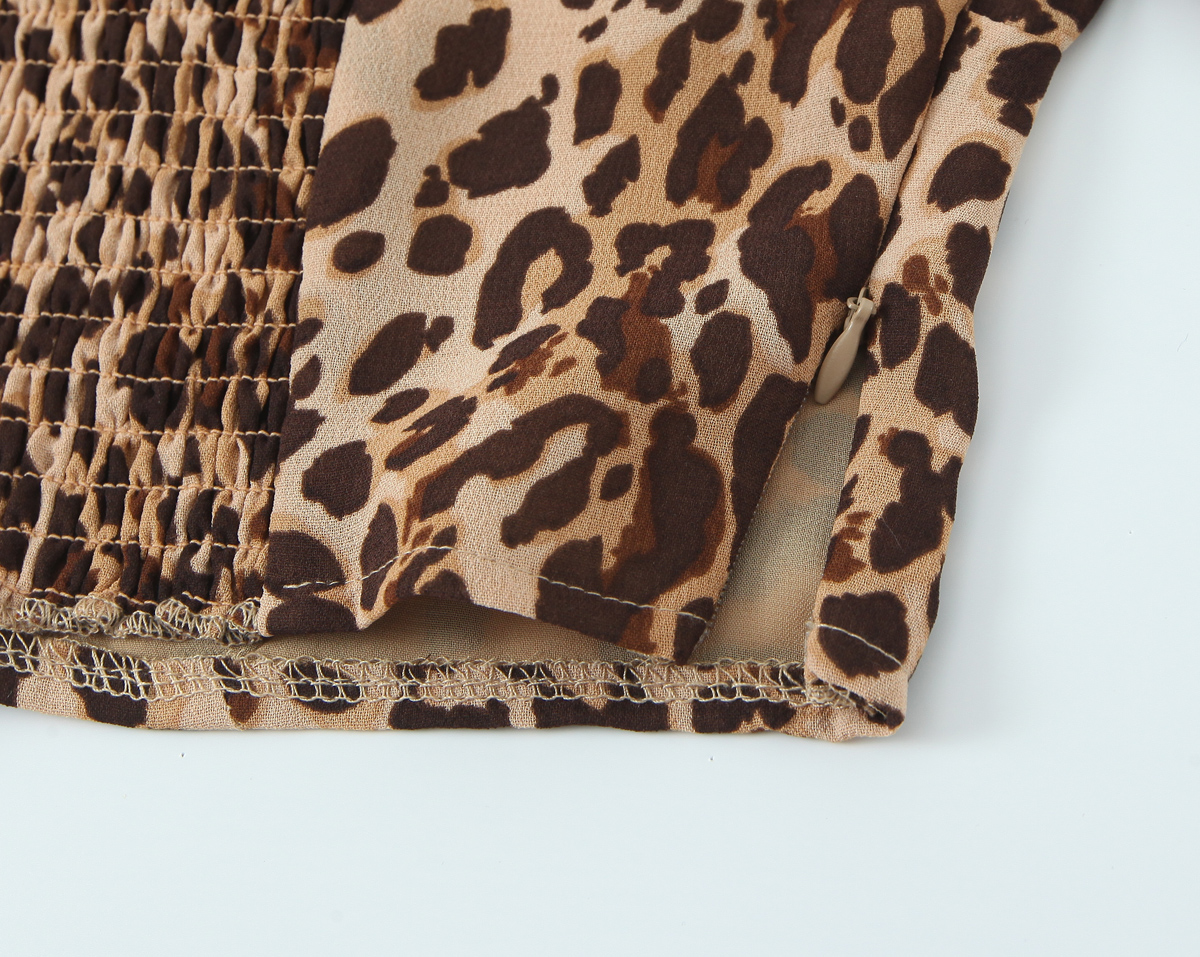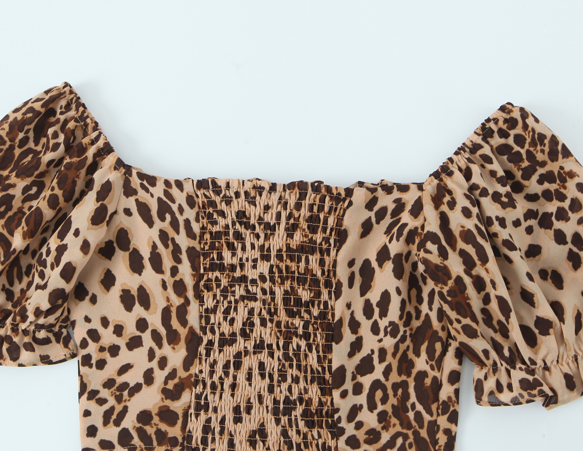 Summer French Sexy Leopard Print Lace up Bow Sexy Two Way Wear Puff Sleeve Shirt