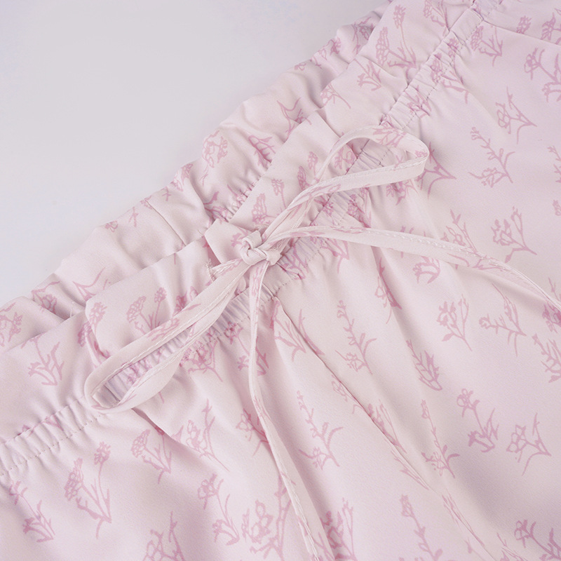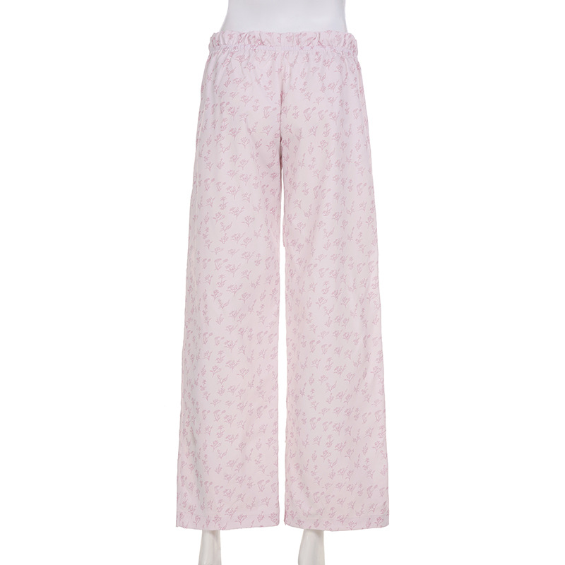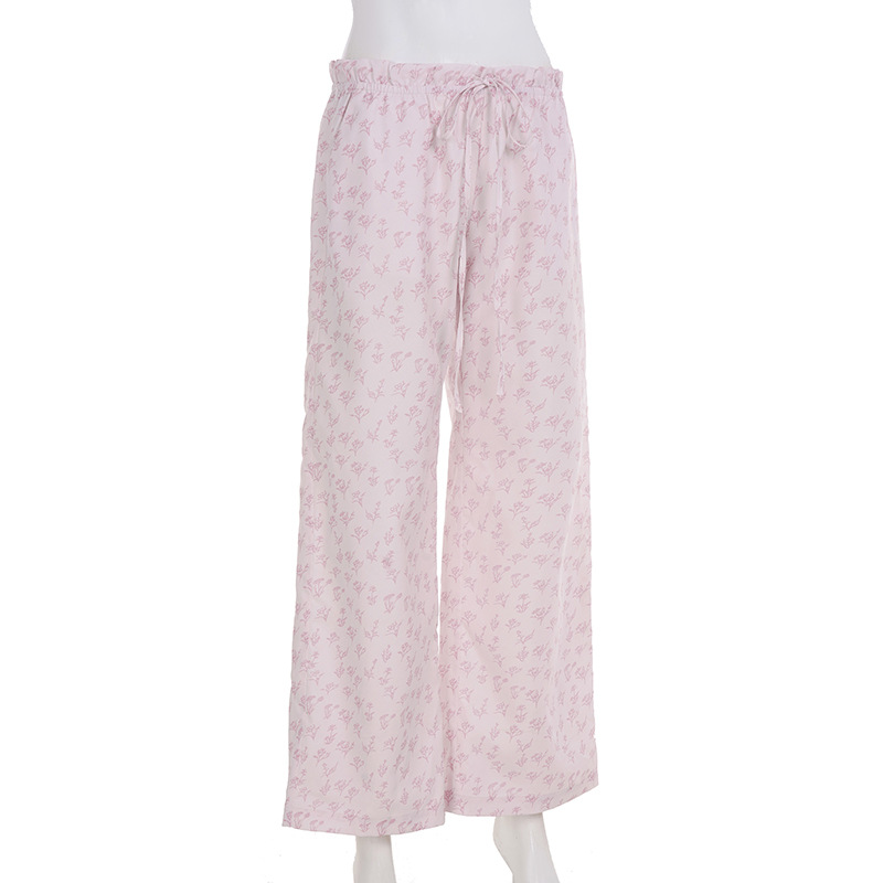 Summer Loose Home Wear Pajama Pants Cute Floral Drawstring Lace Straight Women Casual Pants