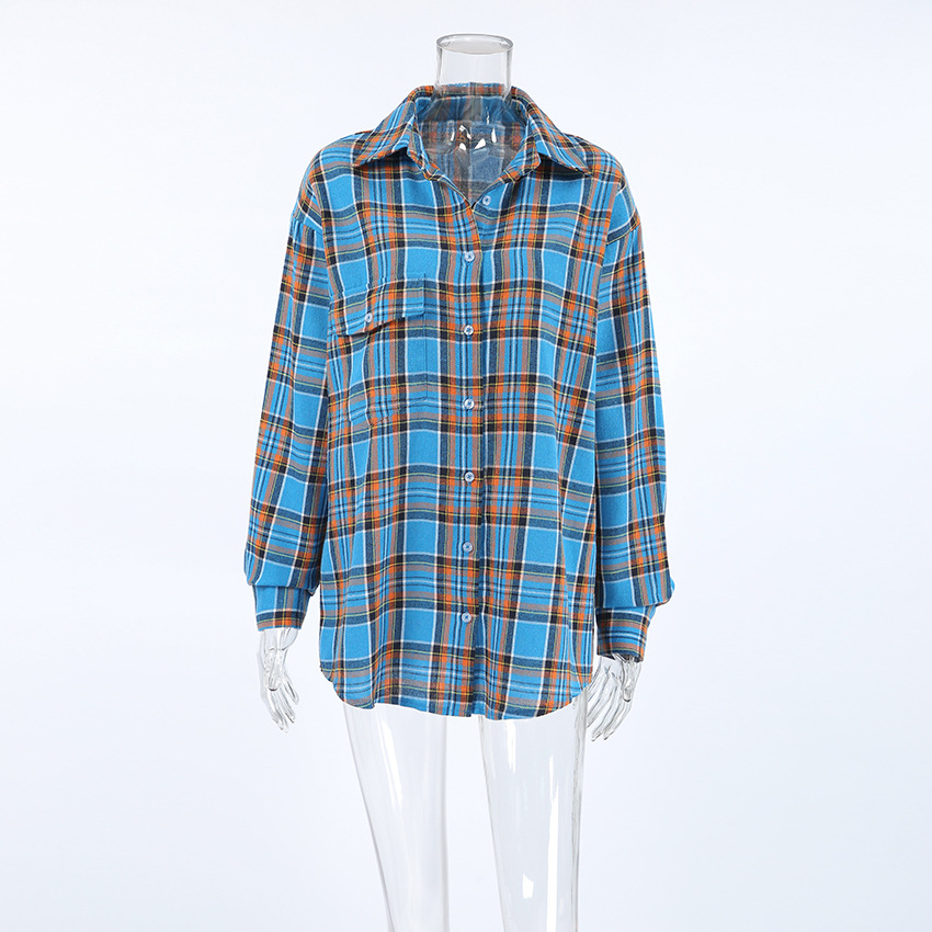 Summer Loose Street Plaid Women Shirt Casual Top for Women