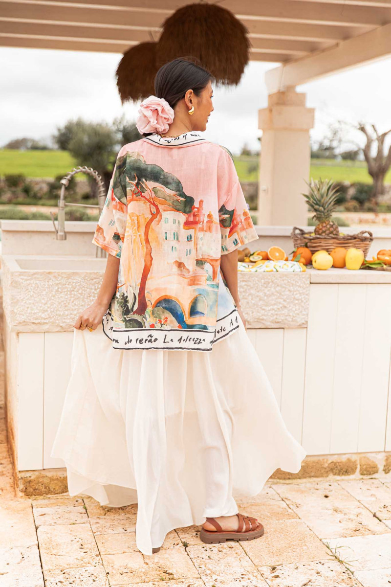 Summer Personalized Graffiti Print Holiday Casual Loose Short Sleeves Shirt Women
