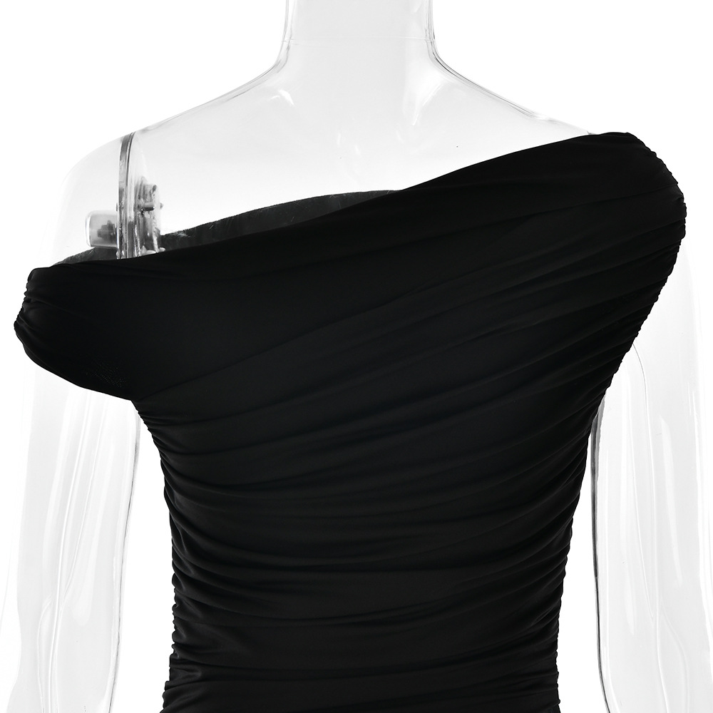 Summer Pleated Women Dress Sexy Sexy One Shoulder Waist Baring Slim Fit Dress