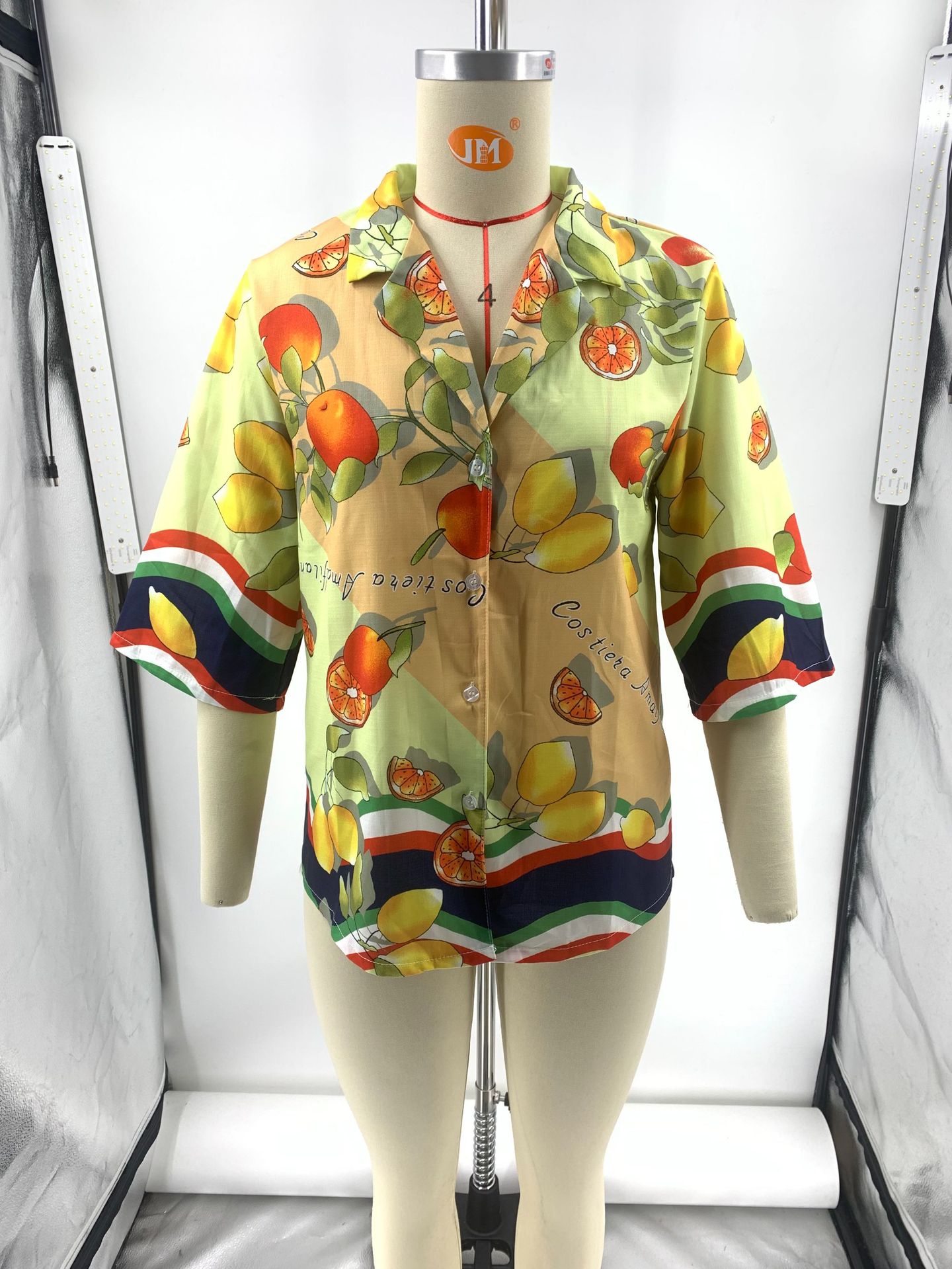 Summer Printed Cardigan Single Breasted Loose Lapels Women Shirt
