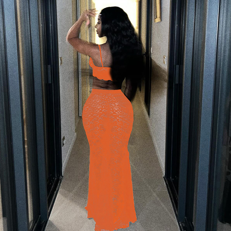 Summer Sexy Cutout Strap Top Solid Color High Waist Skirt Lace Two Piece Sets