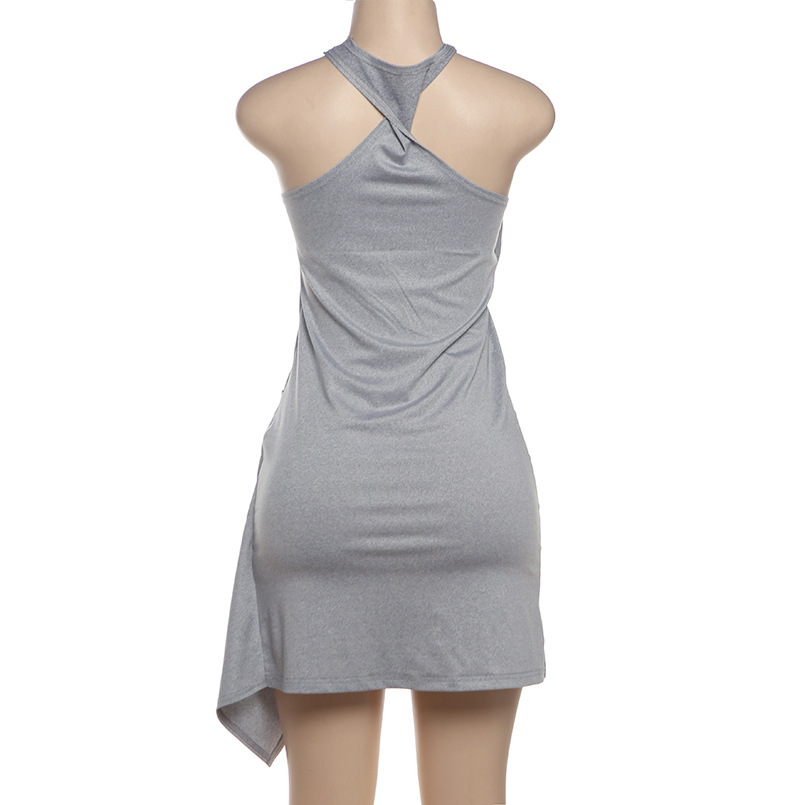 Summer Sexy Slim Fit Sleeveless Halter Irregular Asymmetric Pattern Print Hip Bag Dress