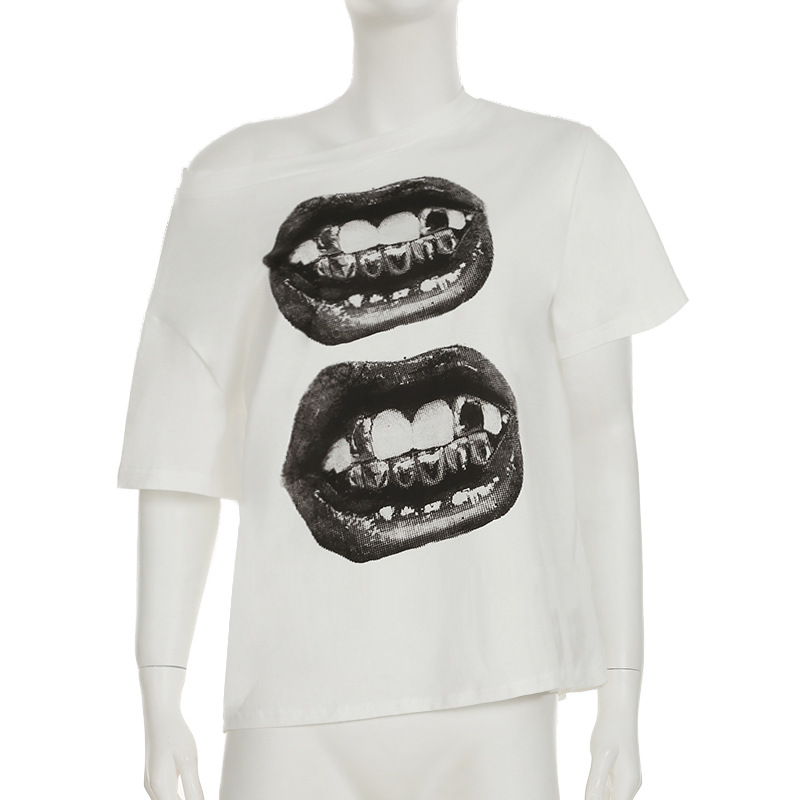 Summer Short Sleeved T shirt Sexy Street Trends Lip Printings Personality Loose Casual Top