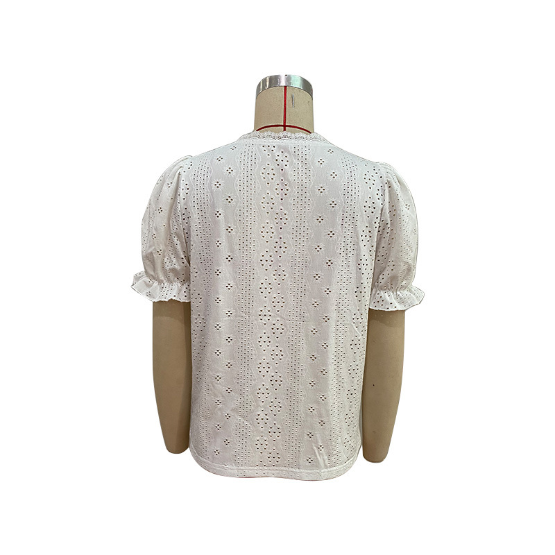 Summer Vacation Hollowed Out Short Sleeve Women Clothing Shirt