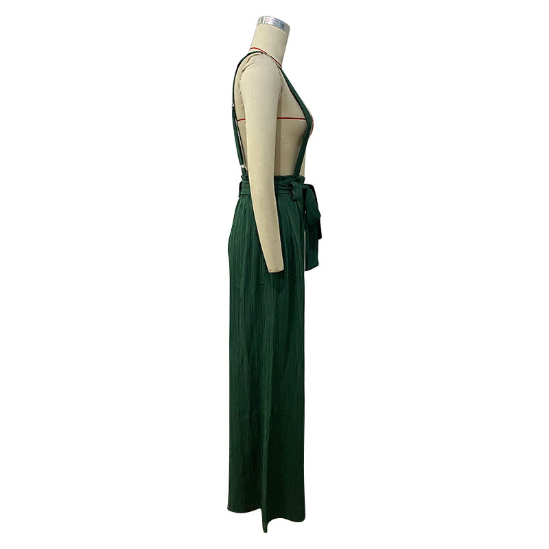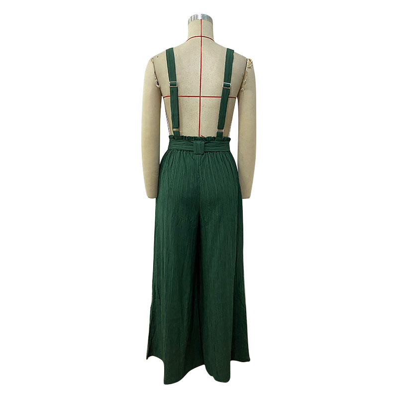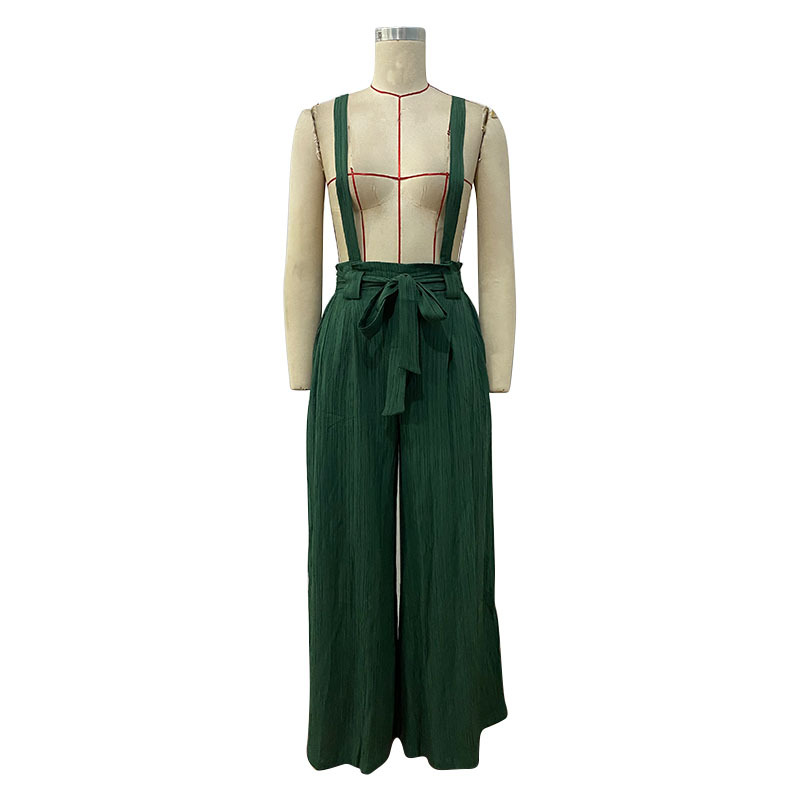 Summer Women Clothing Adjustable Solid Color Wide Leg Suspender Pants