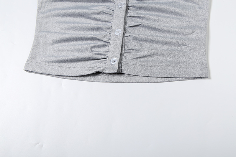 Summer Women Clothing Sexy Halter Lace up Pleated Suspender Vest Slim Fit Buttoned Shorts Set