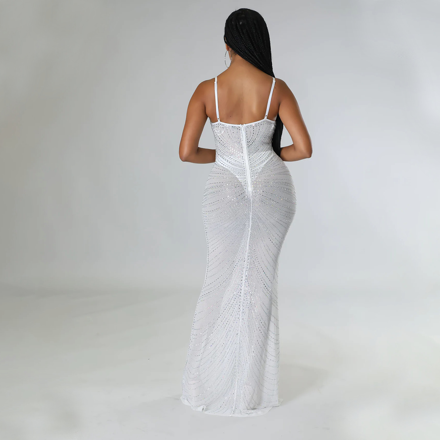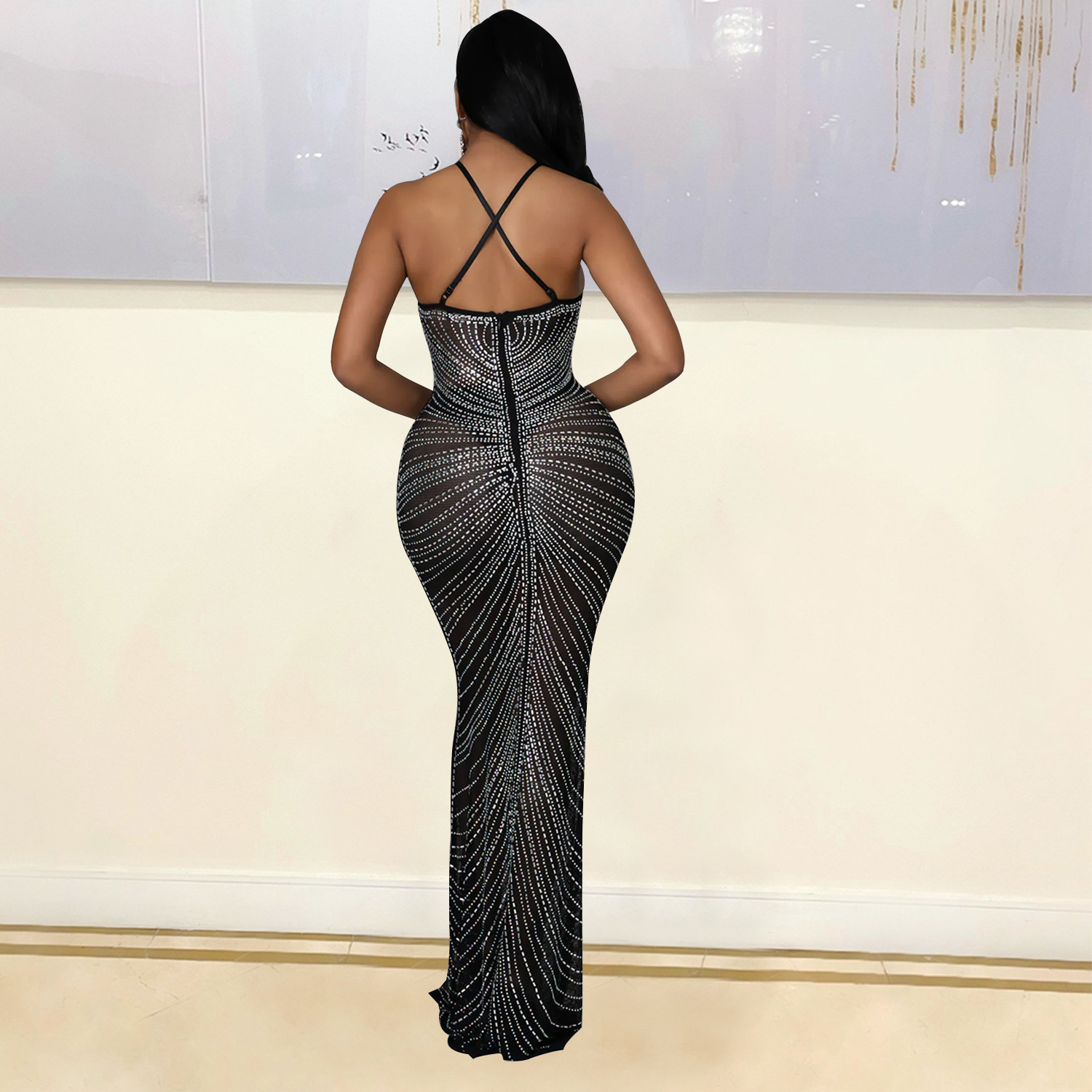 Summer Women Clothing Sexy Mesh Drilling Night Club Slip Dress Women