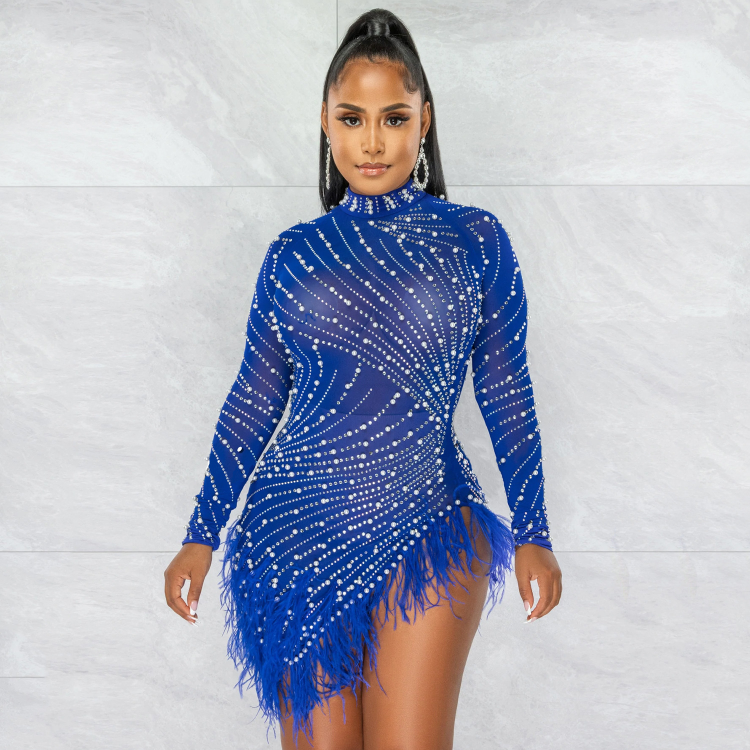 Summer Women Clothing Sexy Tassel Mesh Rhinestone Dress Women
