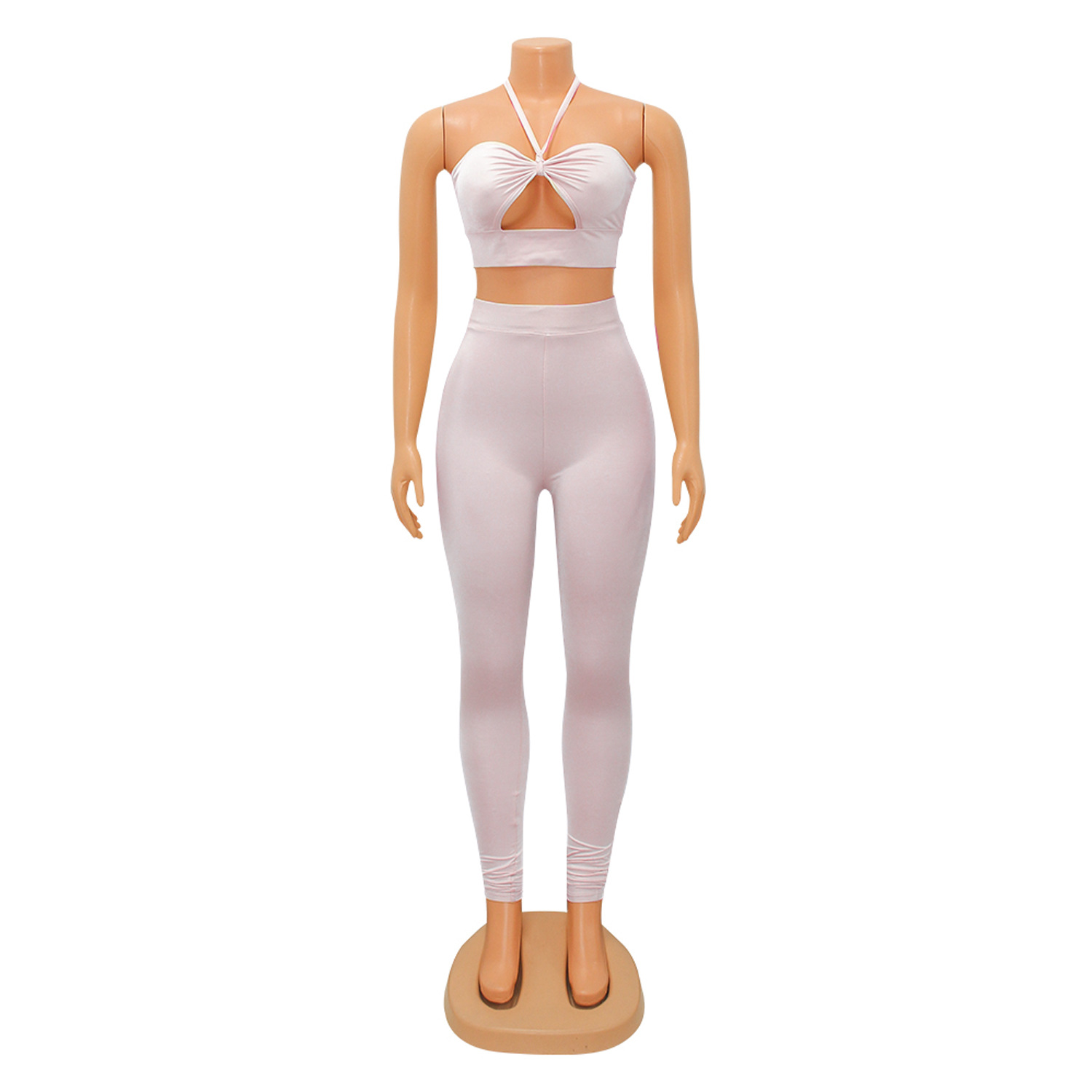 Summer Women Clothing Sexy Tight Hollow Out Cutout out Strap Two Piece Sets Blouse Pants Women