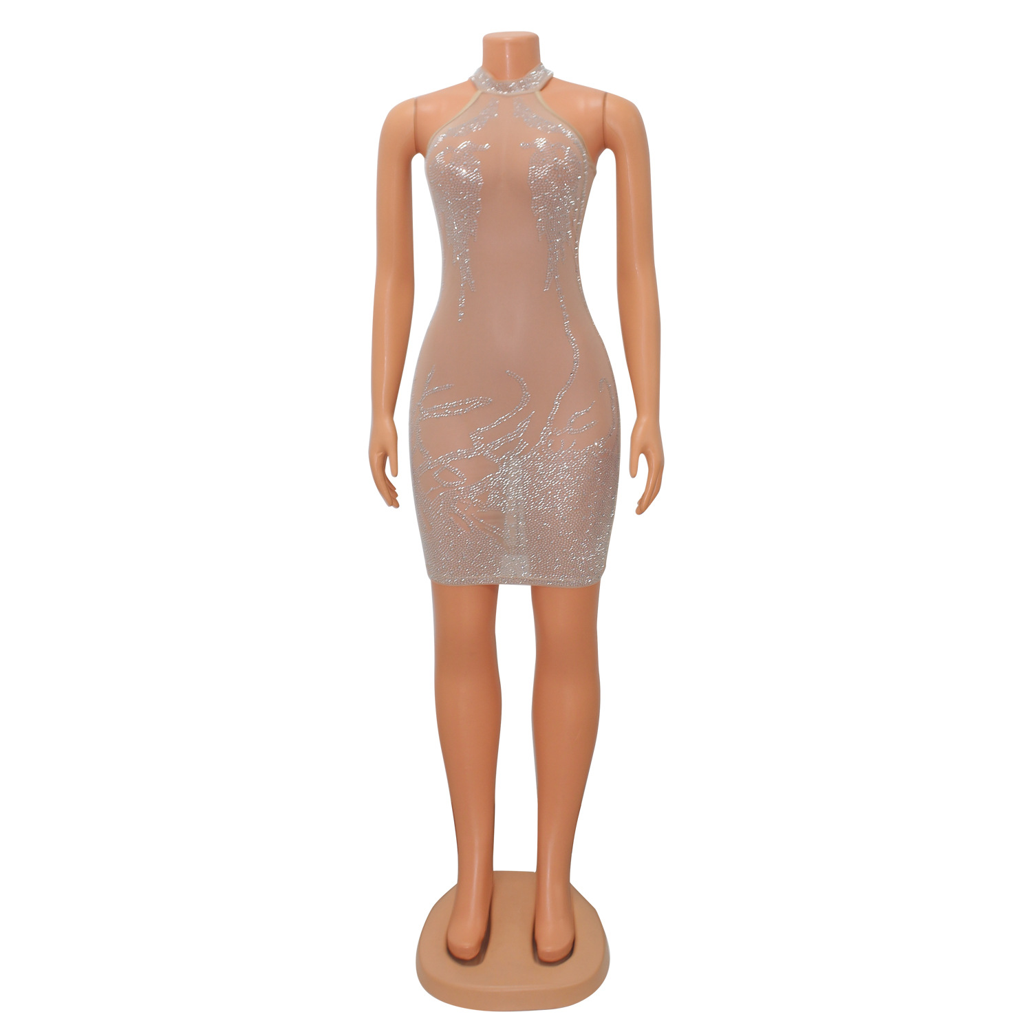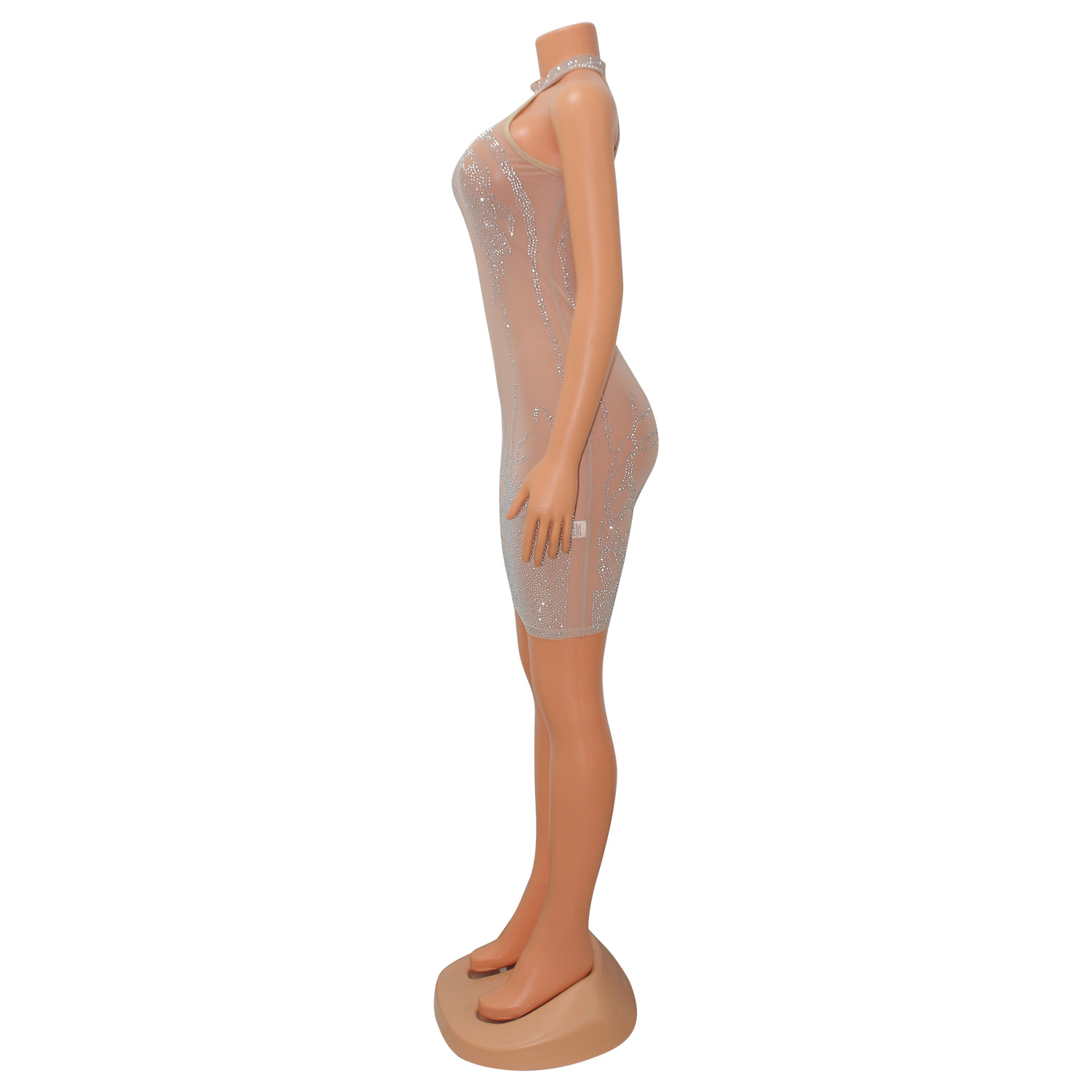 Summer Women Clothing Sexy Tight Mesh Drilling See Through Nightclub Ladies Dress