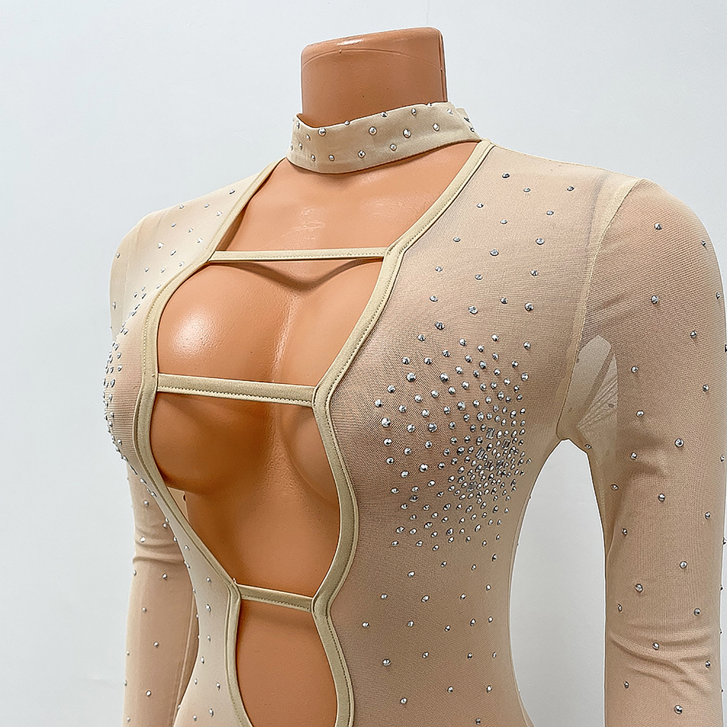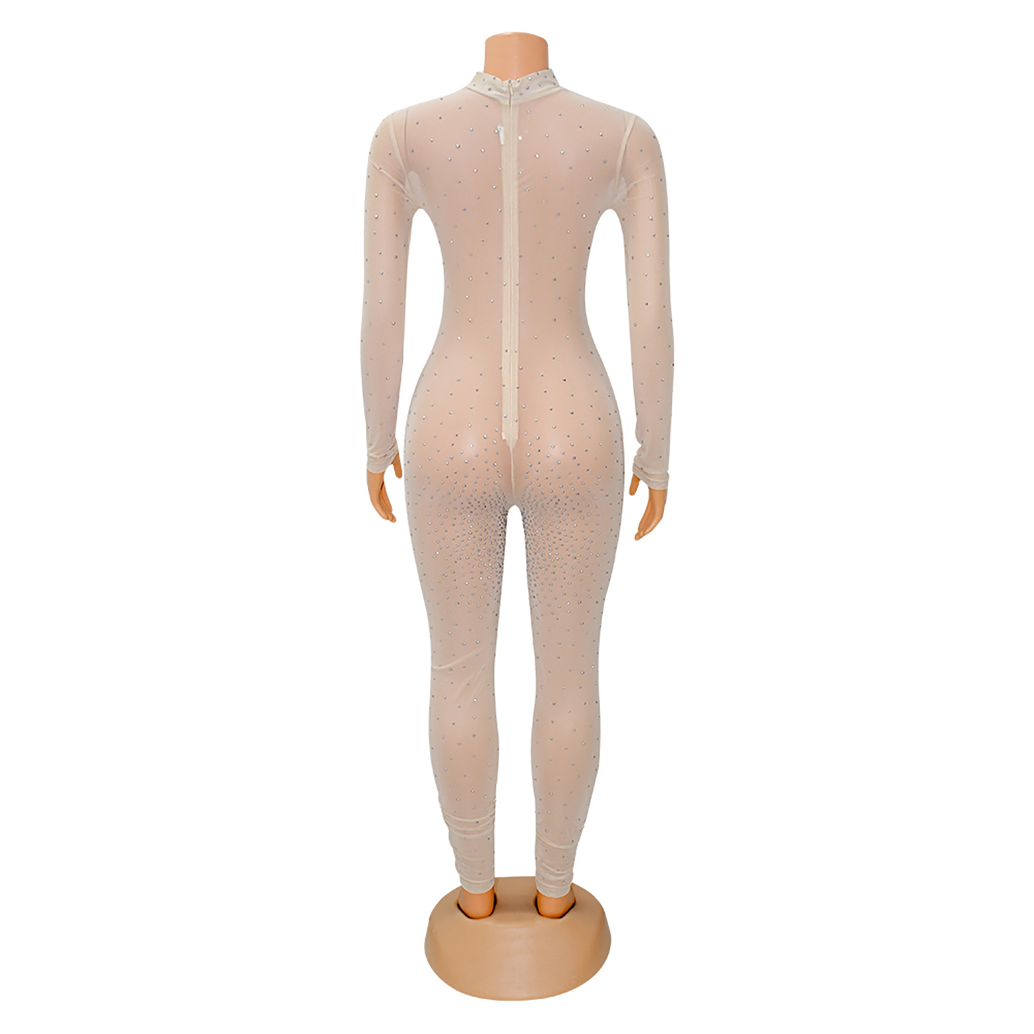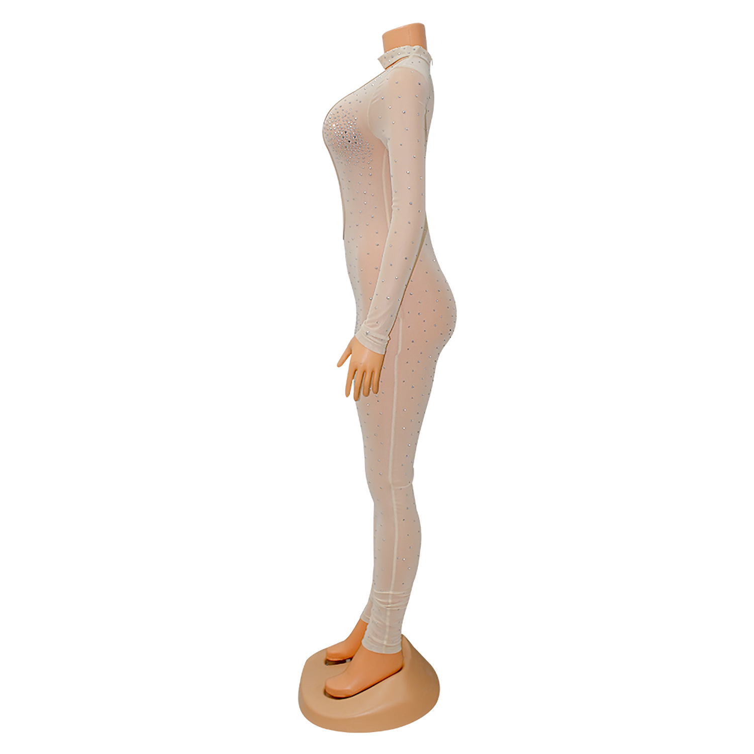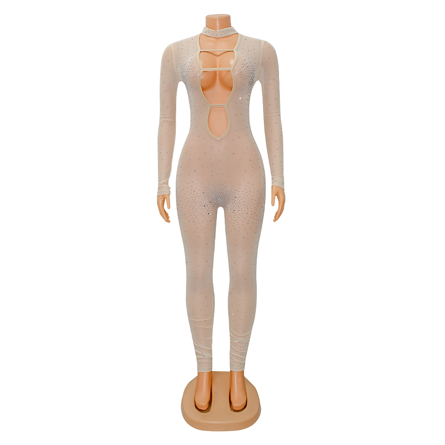 Summer Women Clothing Sexy Tight Mesh Rhinestone Nightclub Jumpsuit for Women