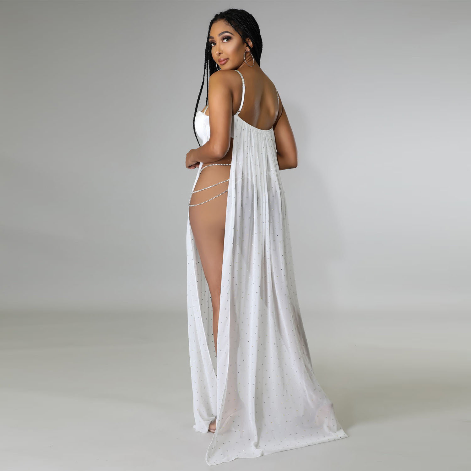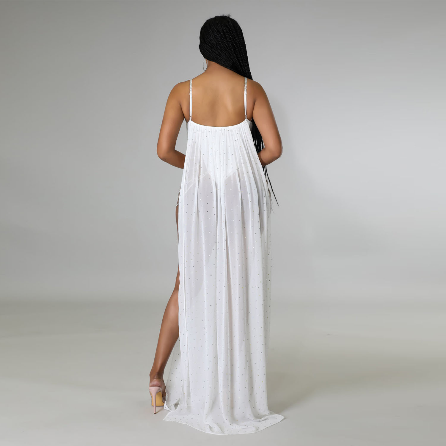 Summer Women Clothing Sexy Tulle Rhinestone See through Dress