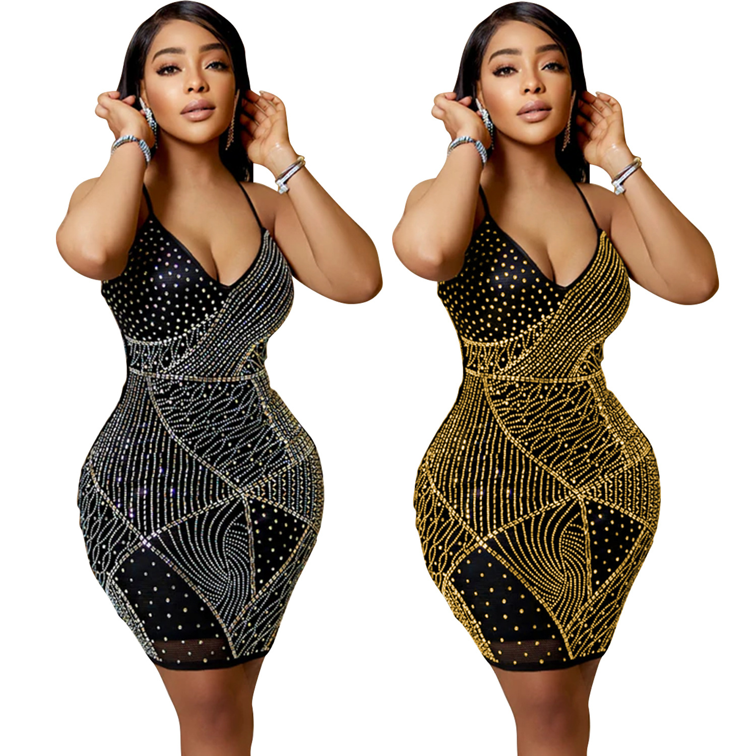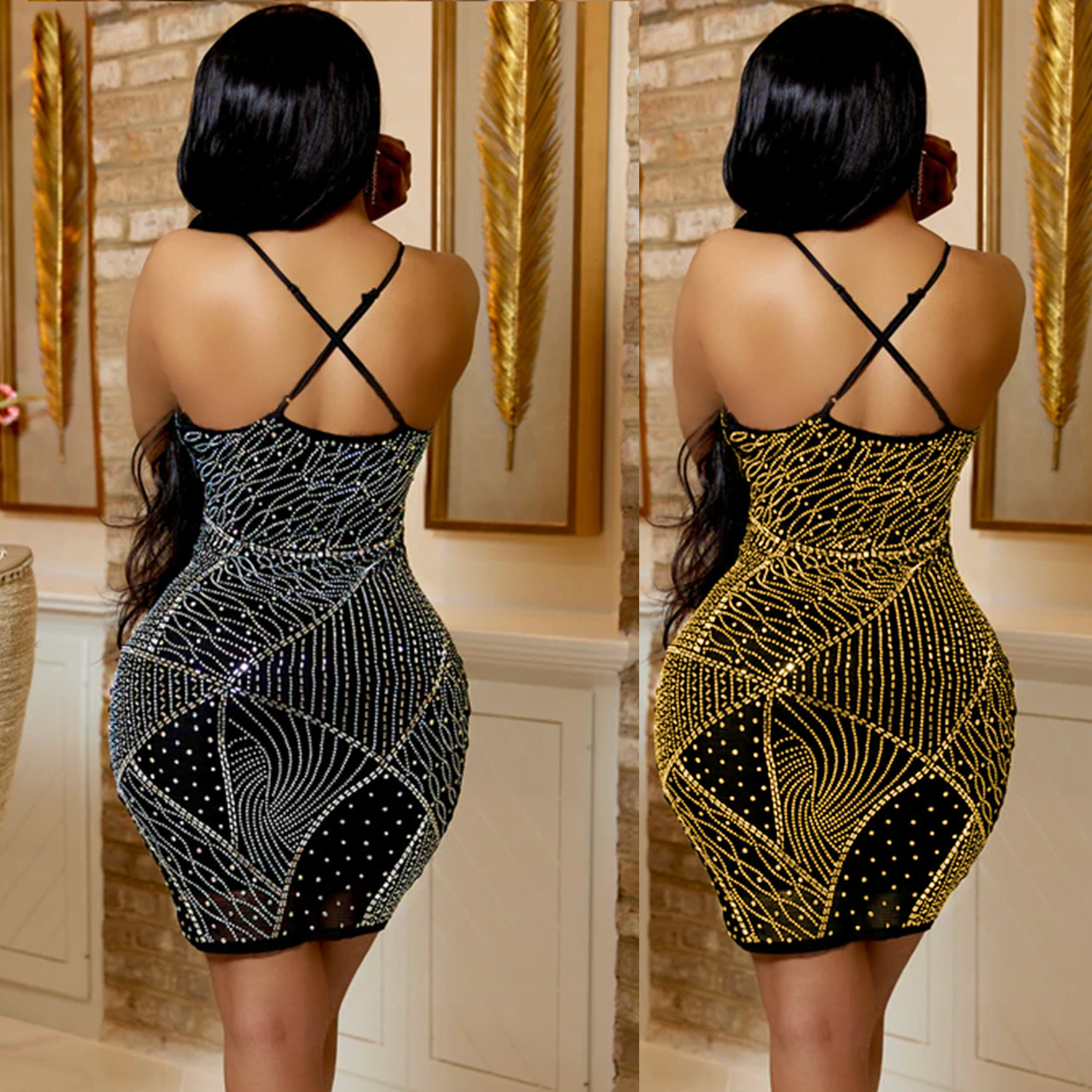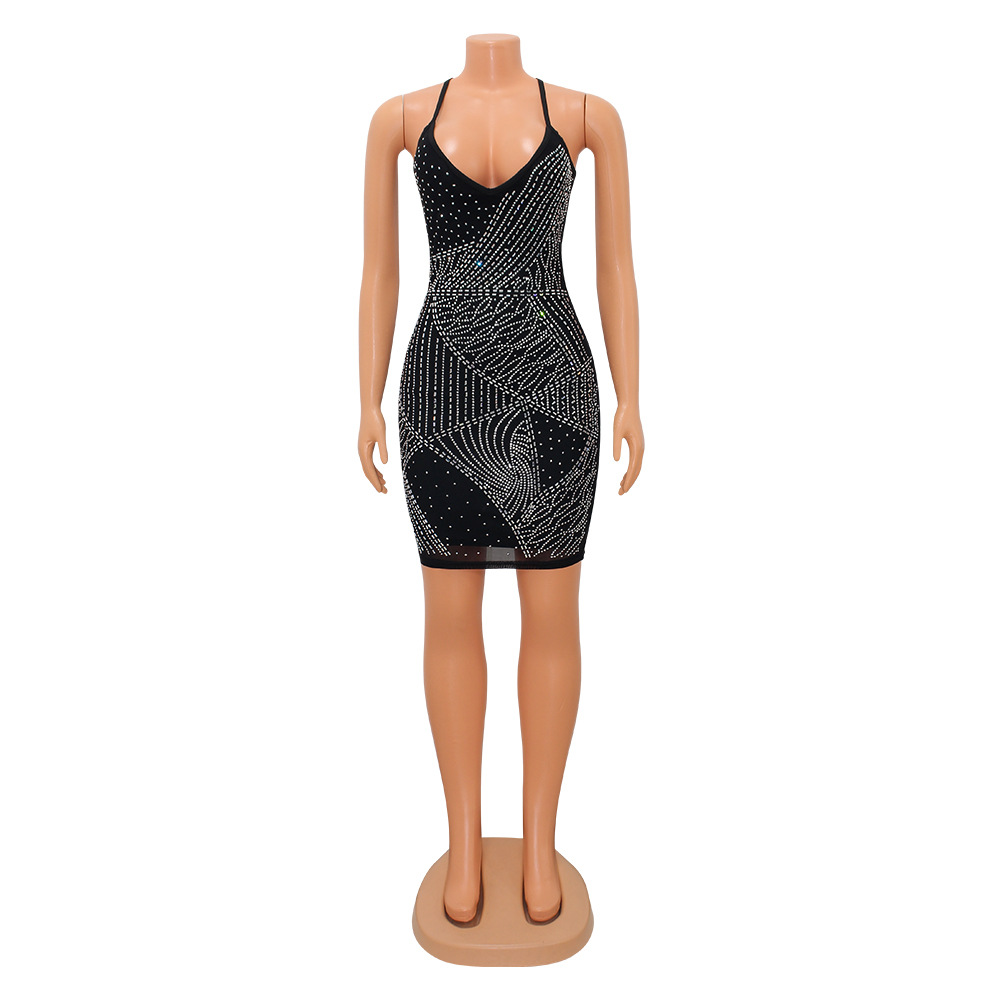 Summer Women Clothing Sexy V-neck Backless Nightclub Rhinestone Dress for Women