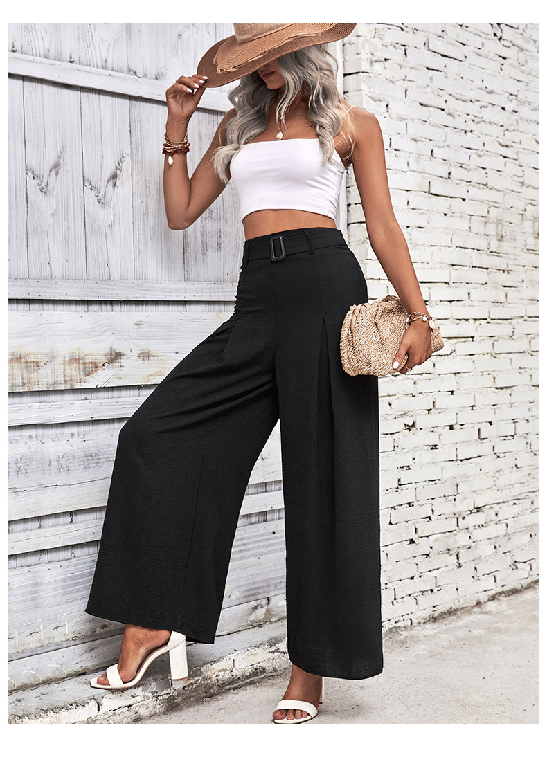 Summer Women Clothing Solid Color High Waist Wide Leg Casual Pants Summer Women
