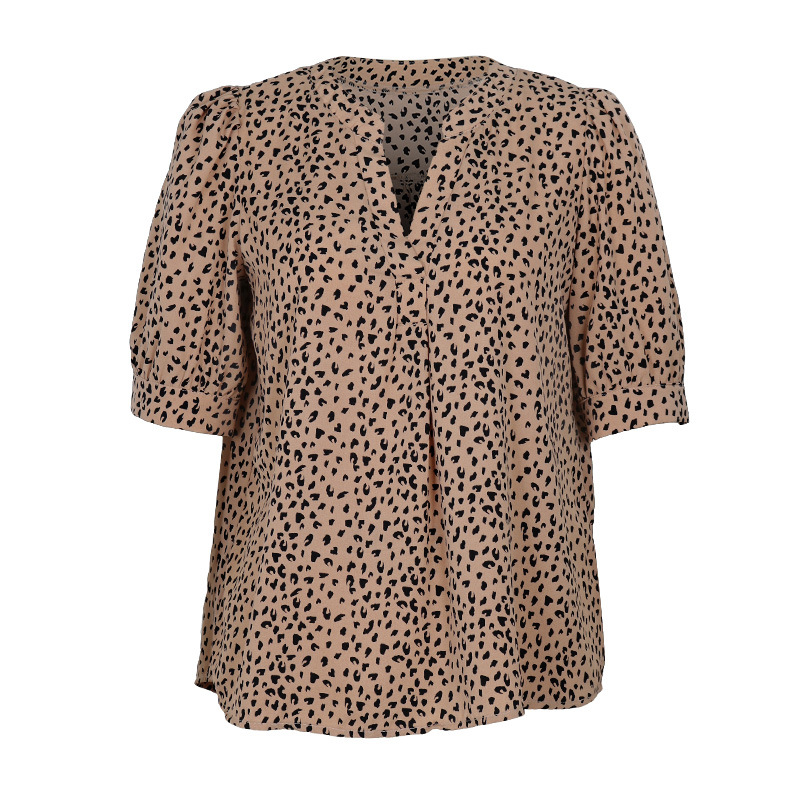 Summer Women Puff Sleeve Pullover Leopard Print Shirt Women