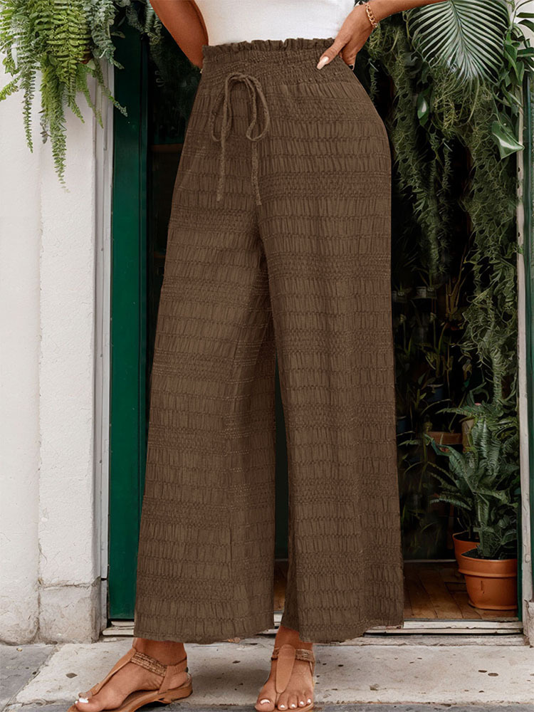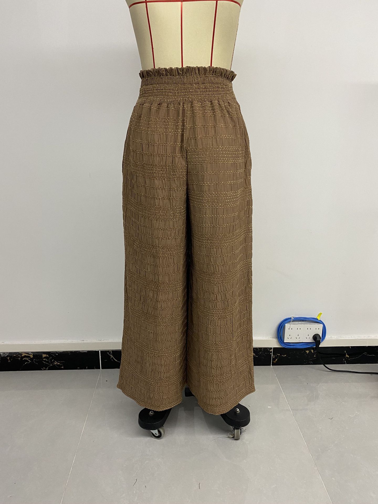 Summer Women Wear Texture Solid Color Wide Leg Casual Pants