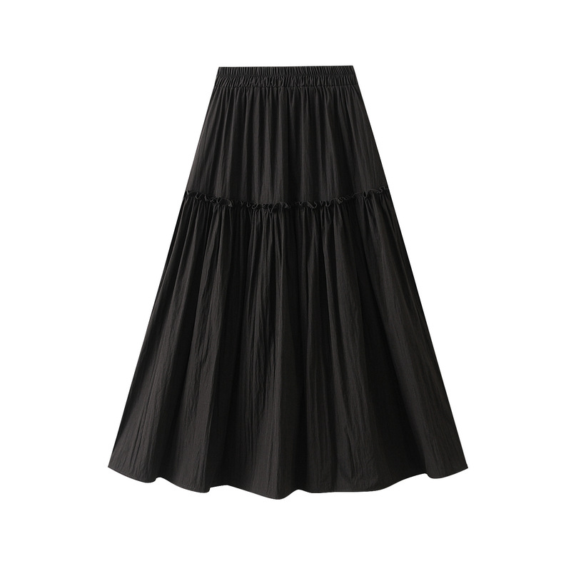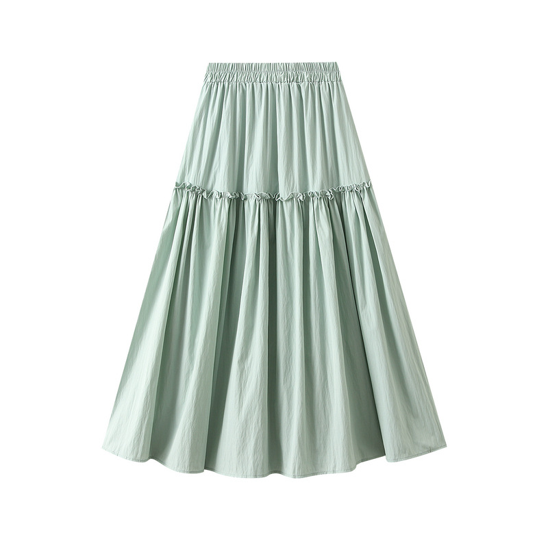 Sweet Stitching Tree Fungus Like Lacework Elastic Waist Skirt Women Summer Mid Length A Line Large Hem Umbrella Skirt