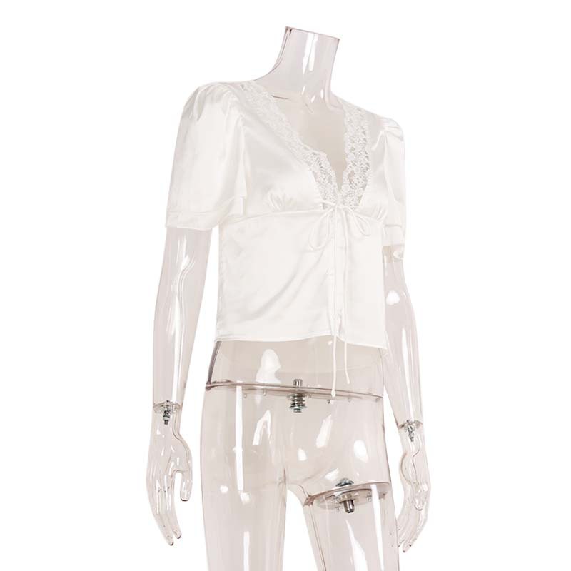 Tied Lace Stitching T shirt Slim Fit Slimming Summer Pure Sexy Short Sexy Short Sleeve Top
