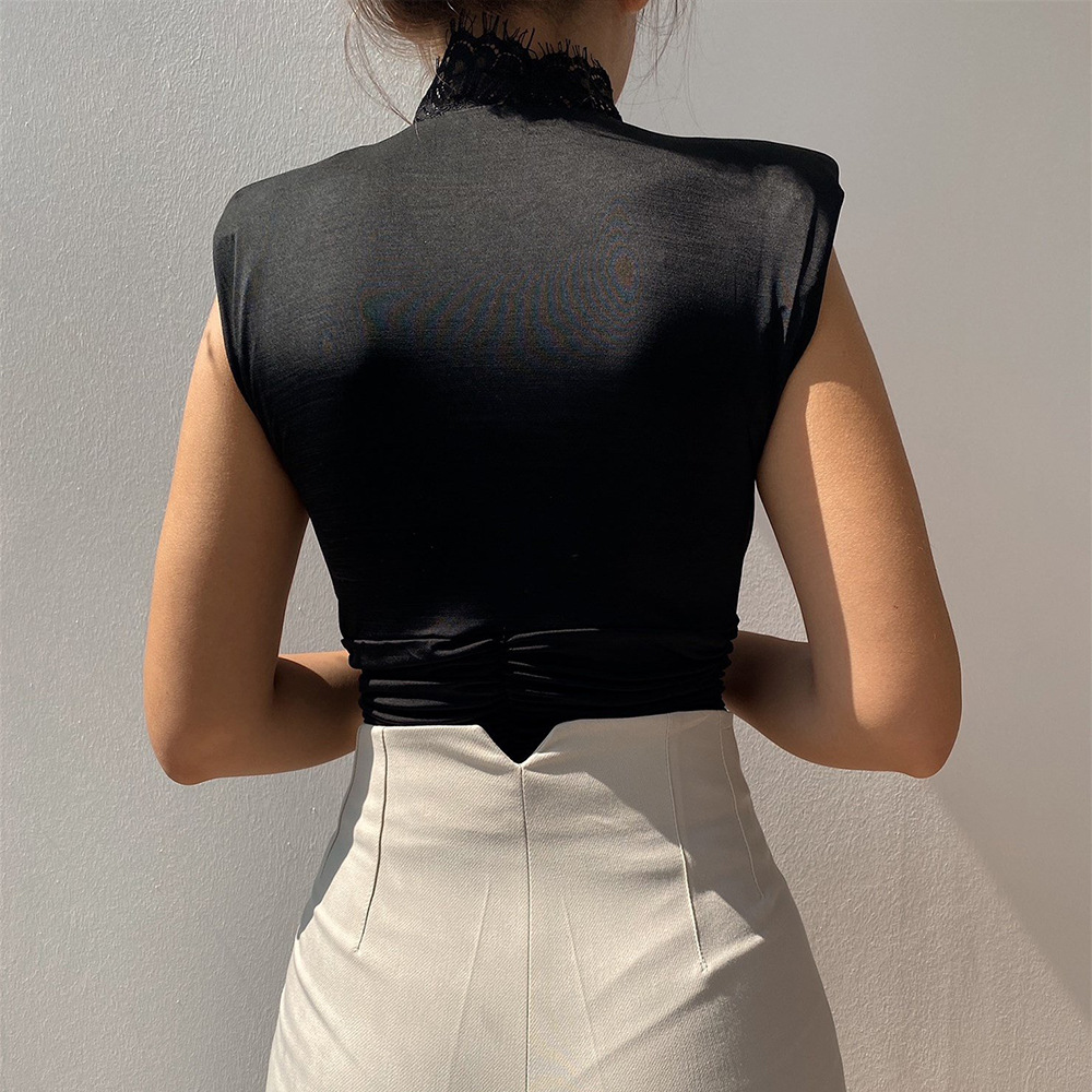 Top Women Sexy V Neck Sleeveless Lace Patchwork Waist Slimming Jumpsuit