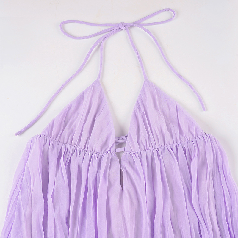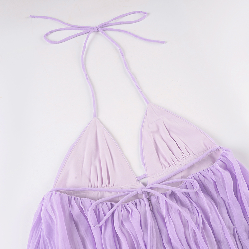 V neck Sexy Strap a Swing Tulle Tutu Dress Women Vacation Sexy Backless Sling