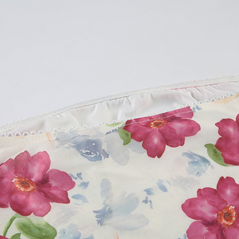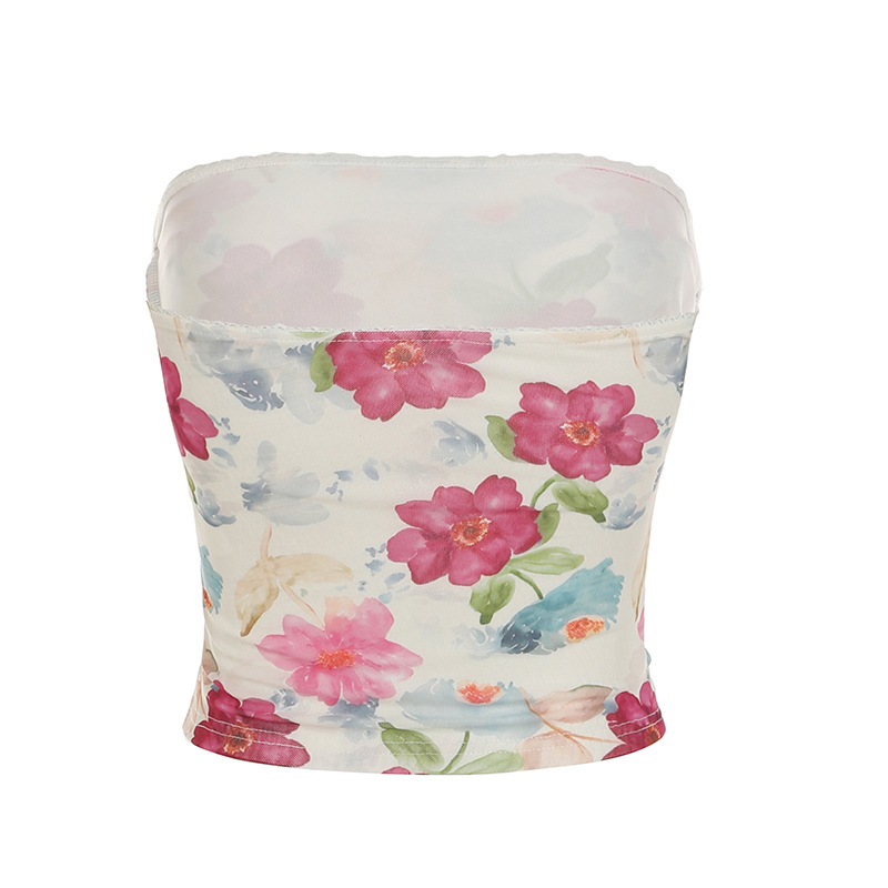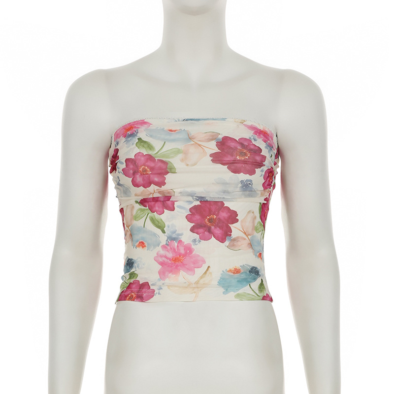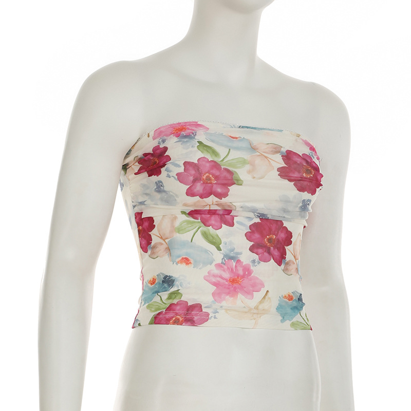 Vacation Women Summer Mesh Floral Print Horizontal Bra Sexy Corset Short Vest