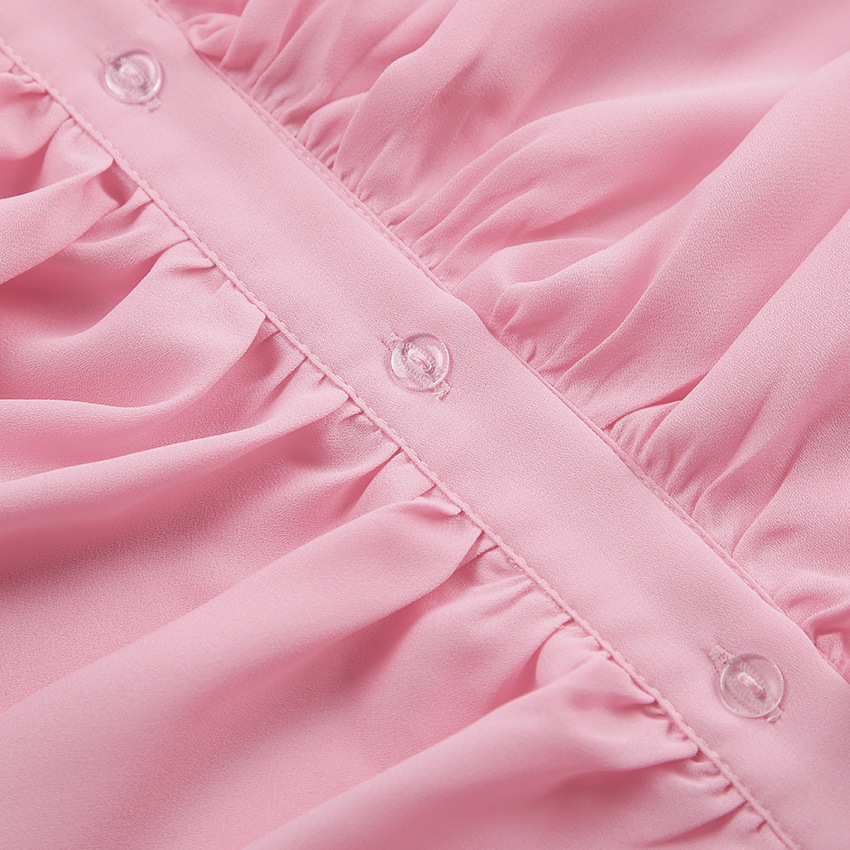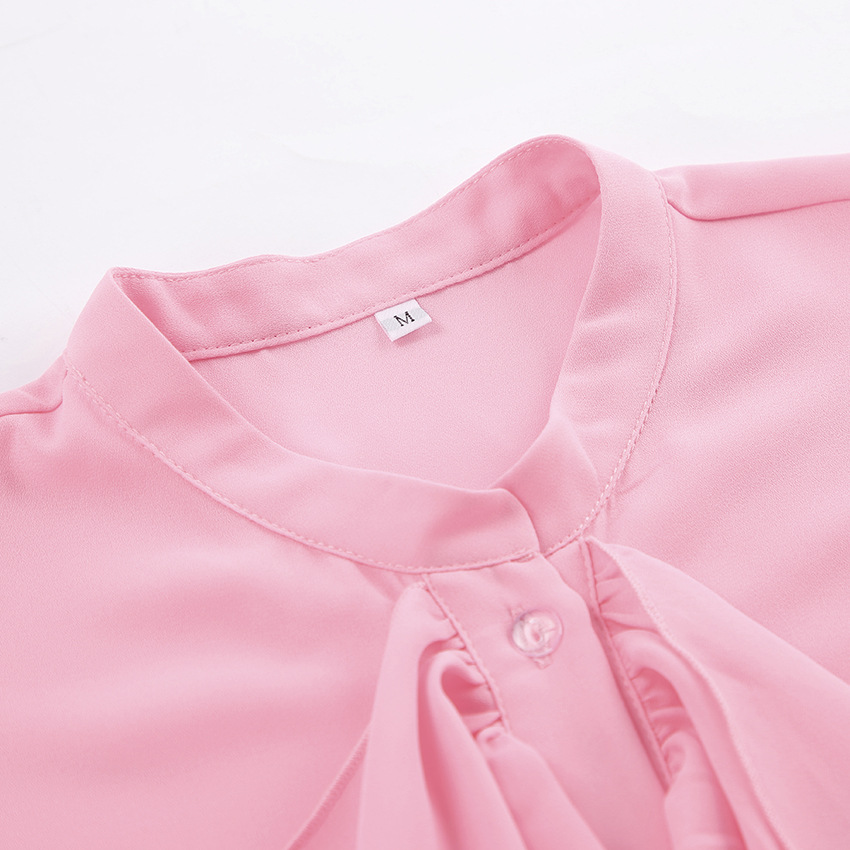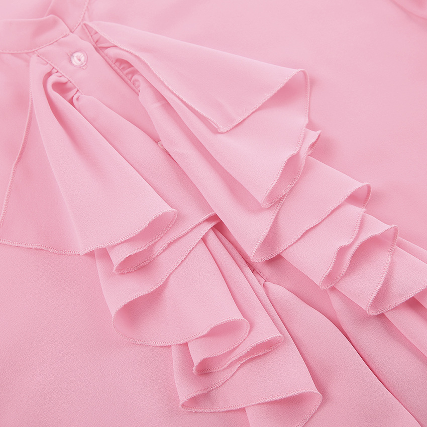 White Chiffon Design round Neck Bell Sleeve Ruffled Women Shirt Spring Summer Women Shirt