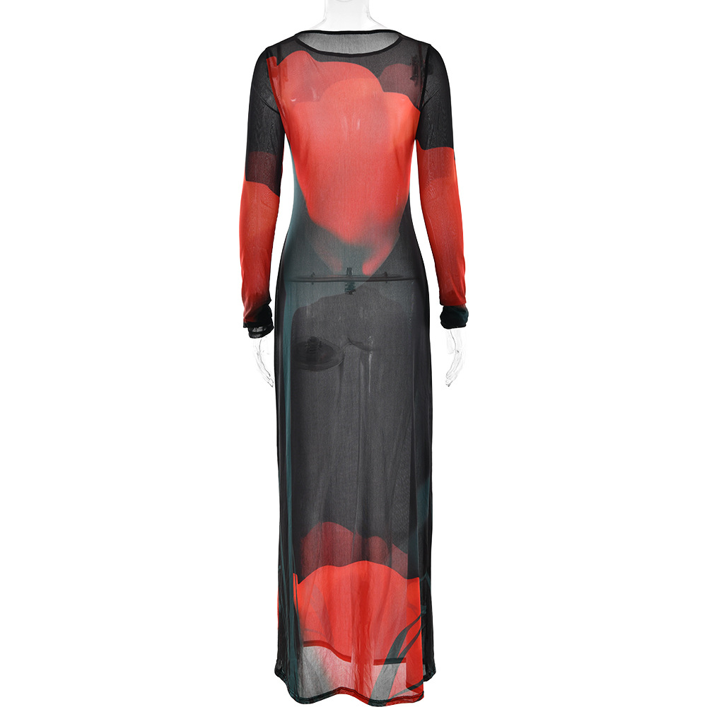 Winter Sexy See through Slim Fit Dress Arrival Printing round Neck Dress