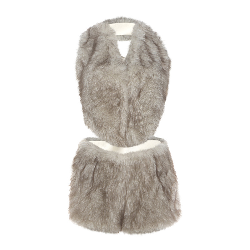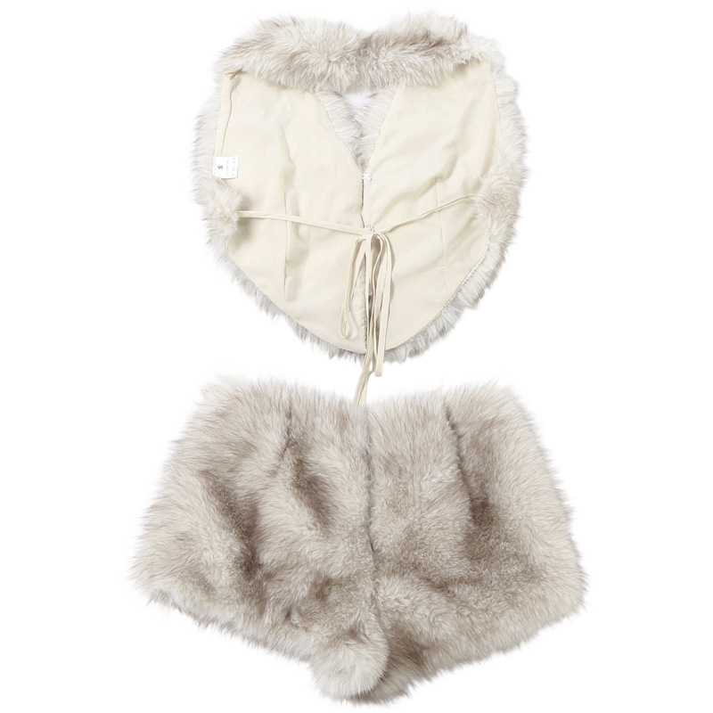 Winter Women Clothing Sexy Backless Lace up Plush Vest Zipper Shorts Set for Women