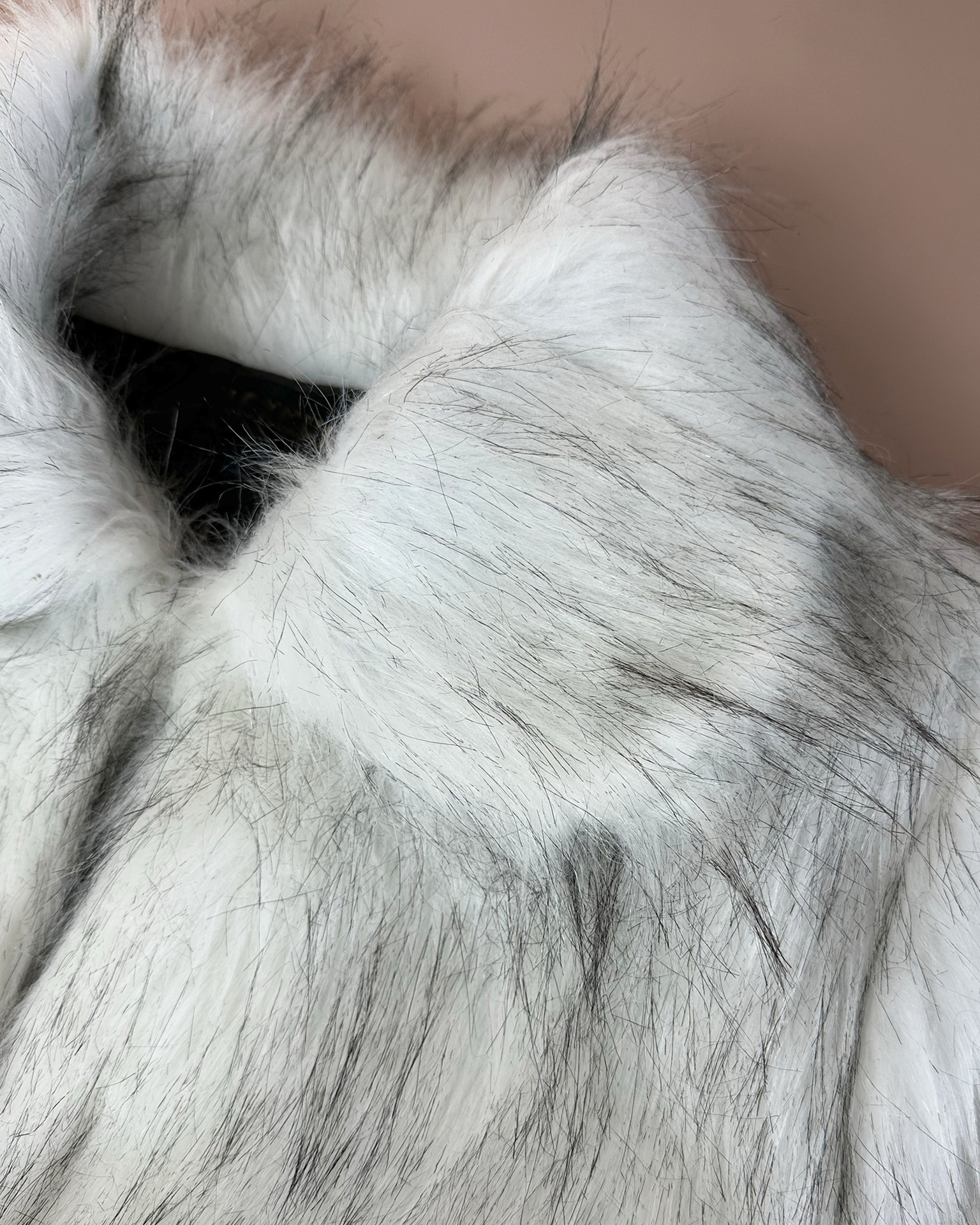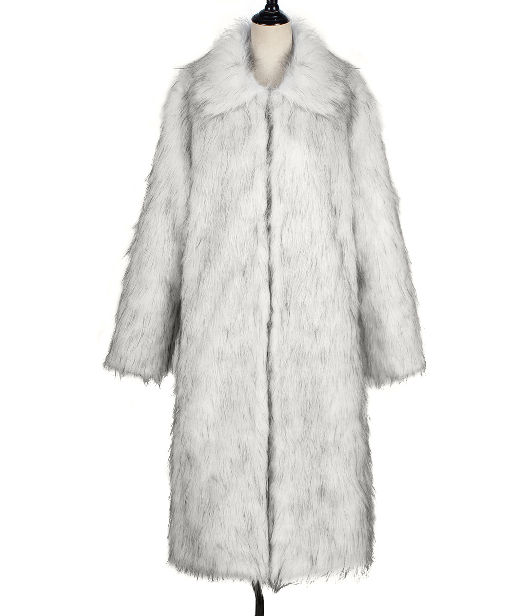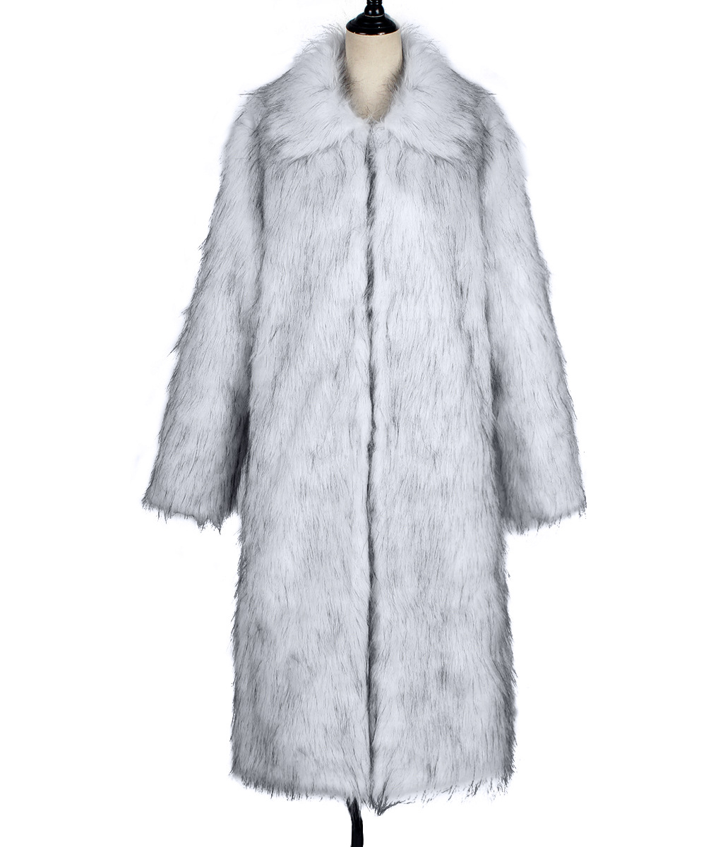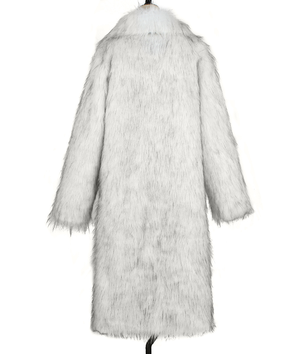 Women Autumn Winter Square Collar Faux Fur Long Coat Warm Coat