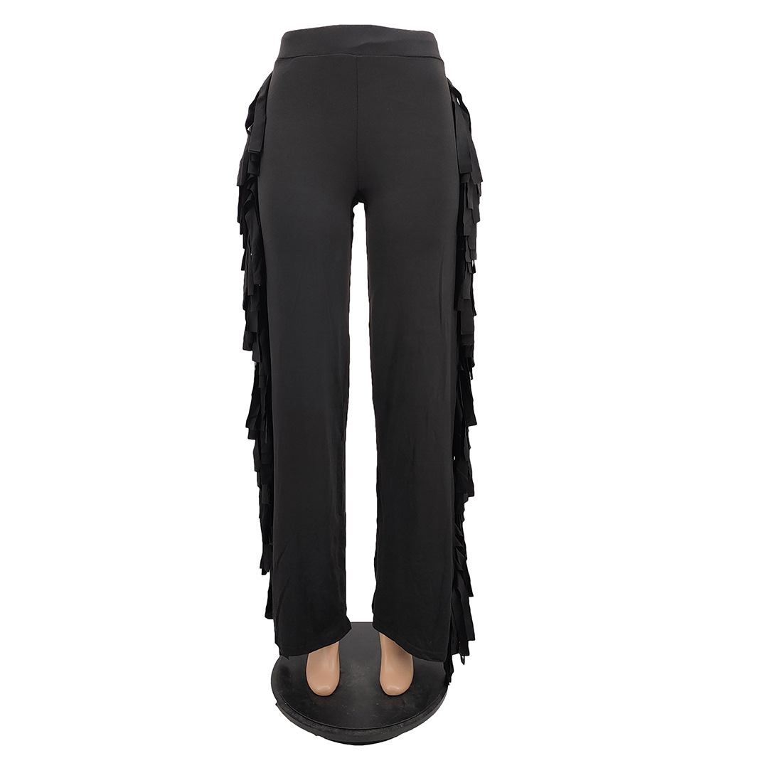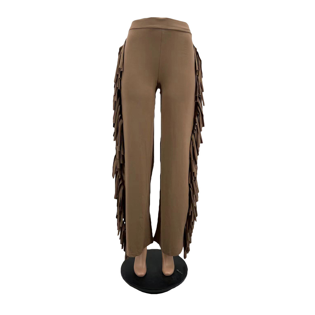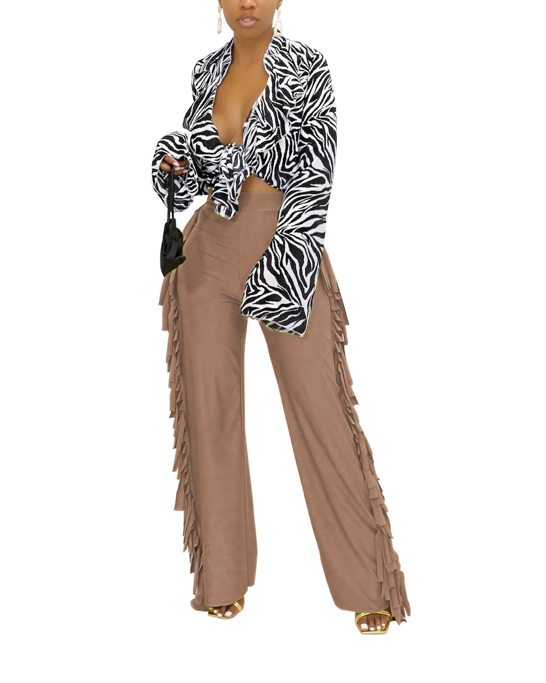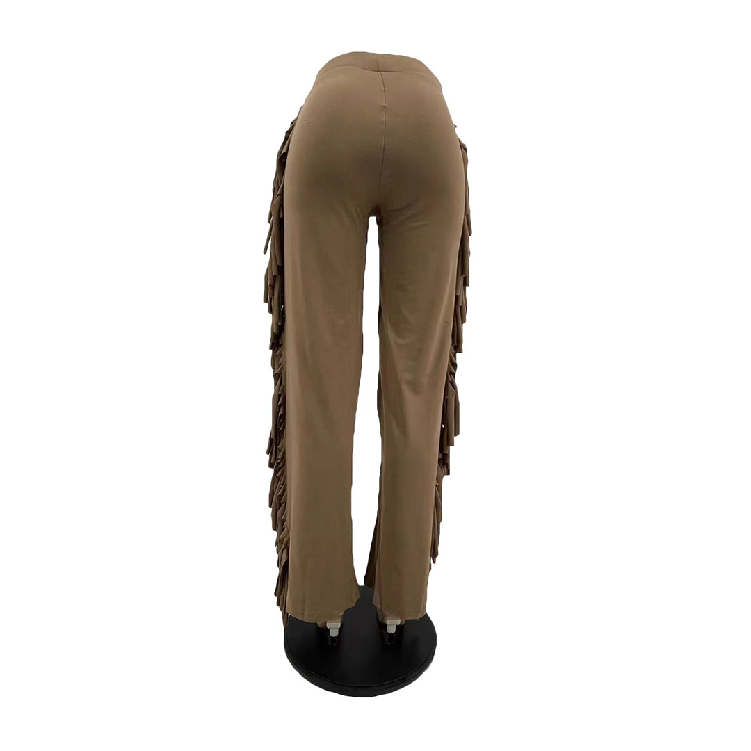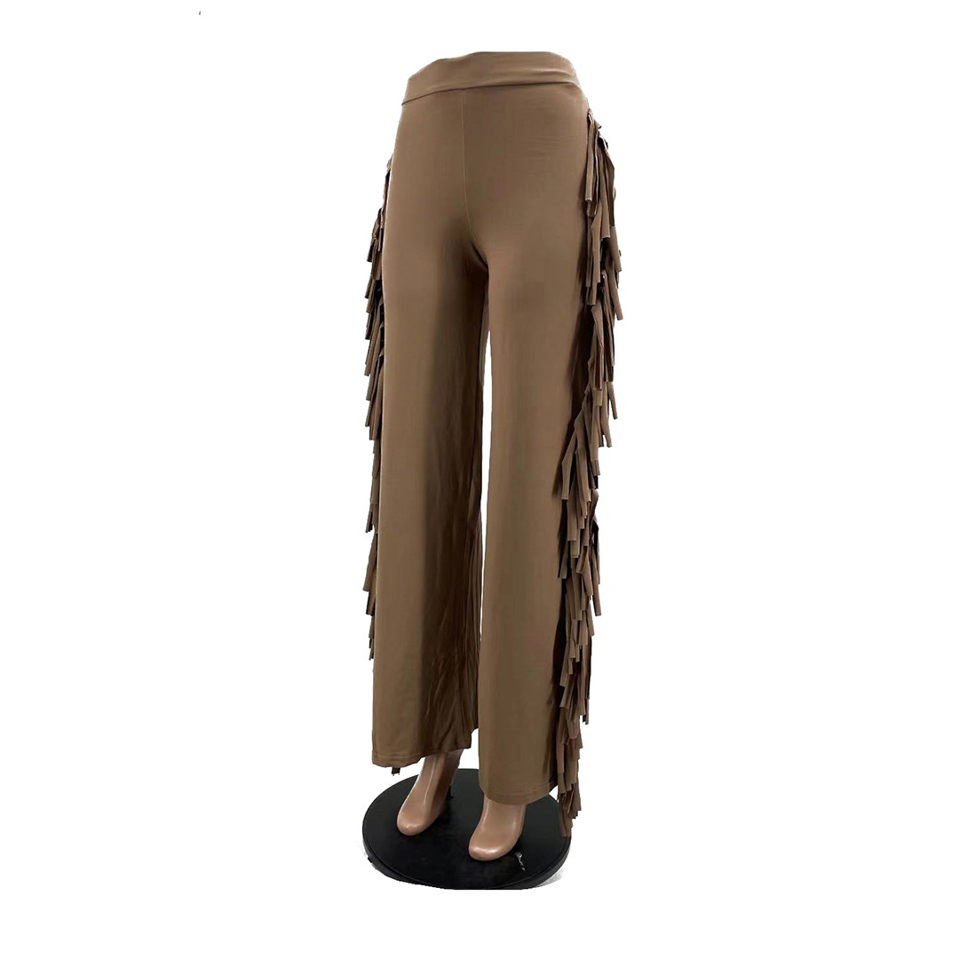 Women Brushed Cute Straight Wide-Leg Pants with Tassel on Both Sides
