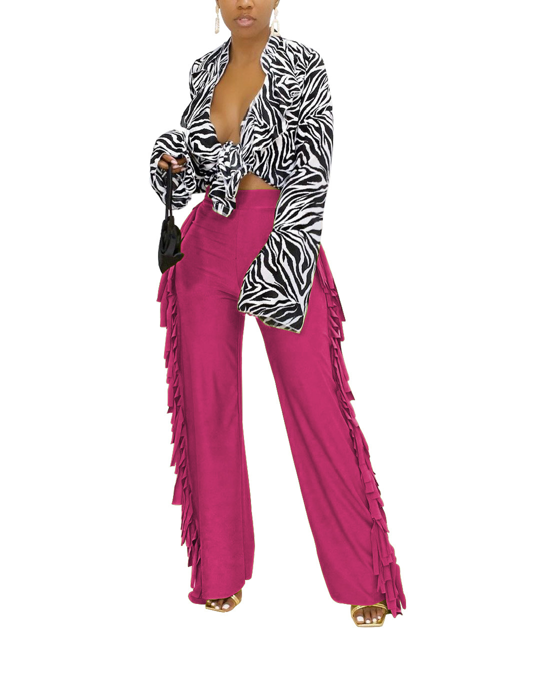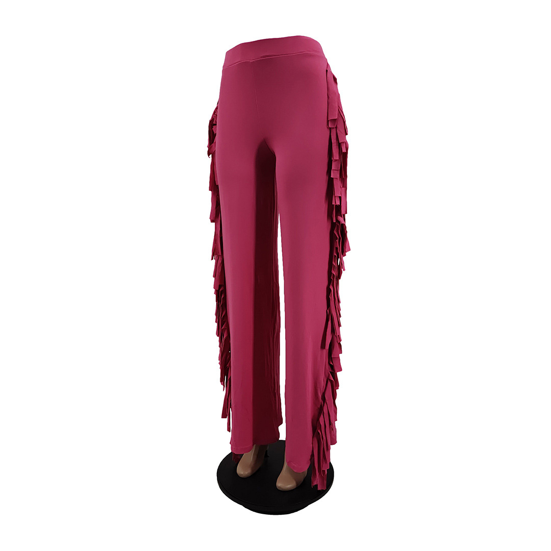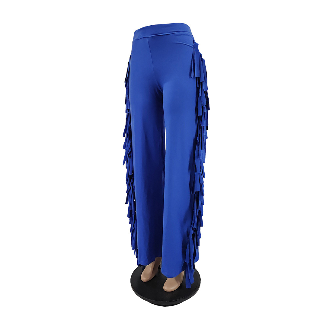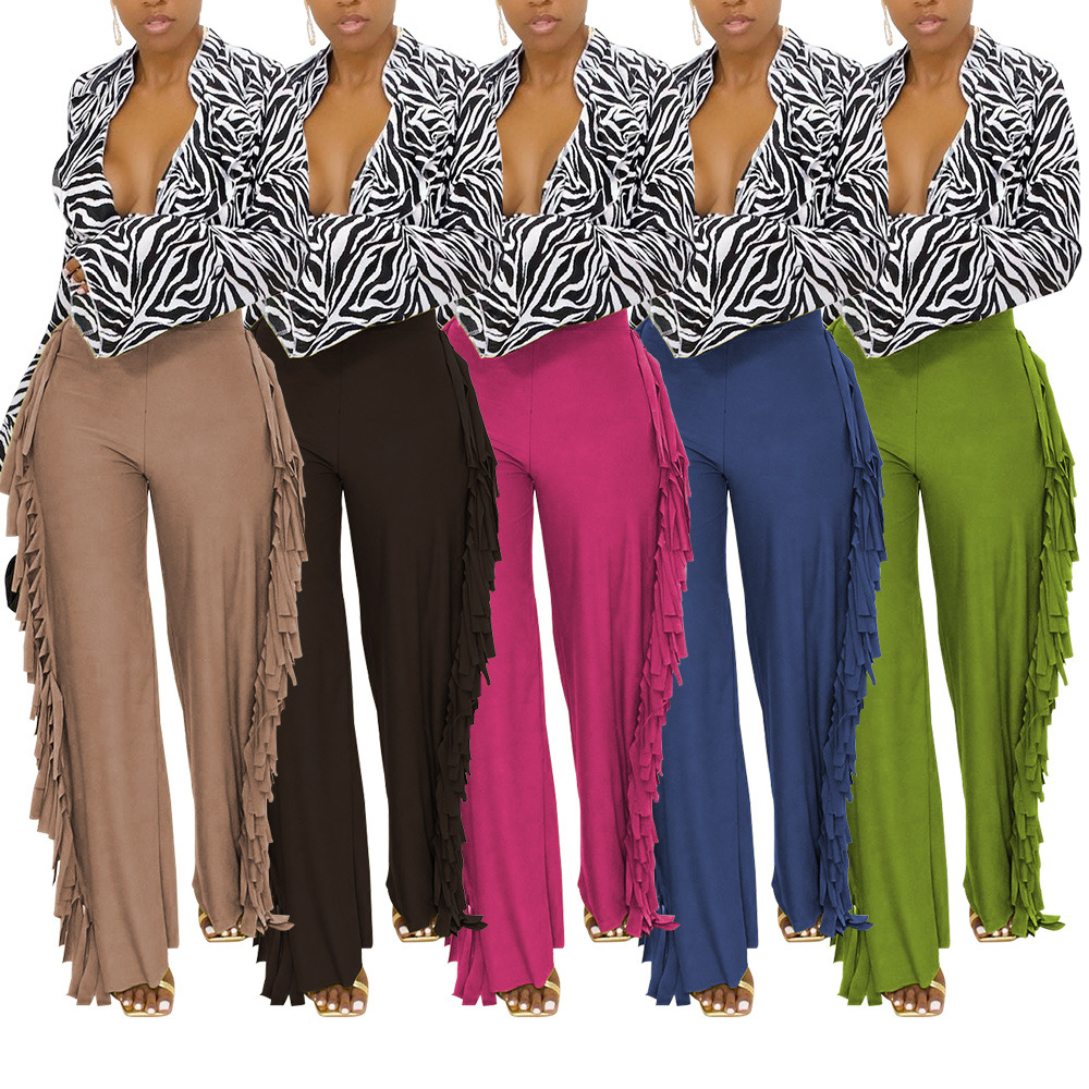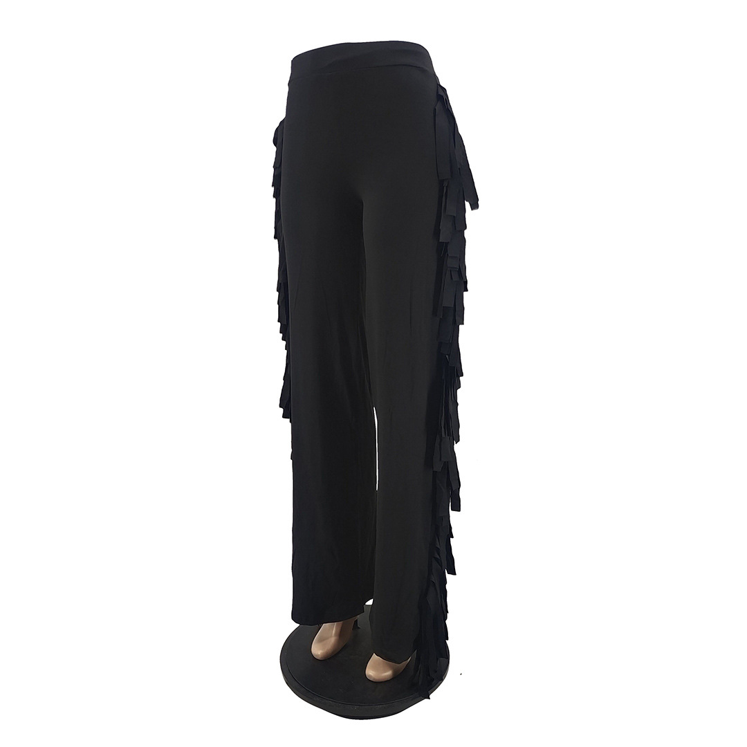 Women Brushed Cute Straight Wide-Leg Pants with Tassel on Both Sides